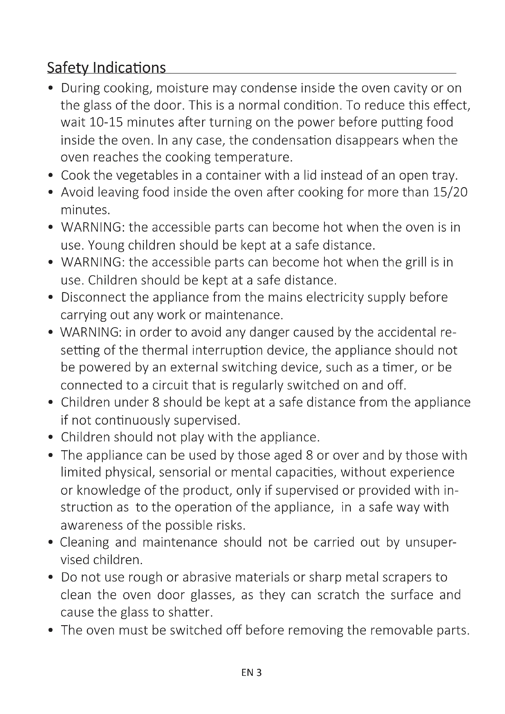 - The oven must be switched o before removing the removable parts. Safety IndicaonsEN 4 Aer cleaning, reassemble them according the instrucons.