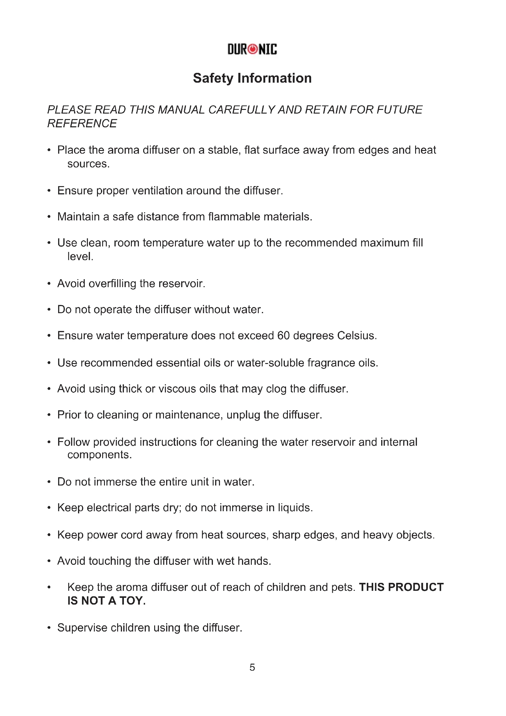 - Keep the aroma diuser out of reach of children and pets. THIS PRODUCT IS NOT A TOY.