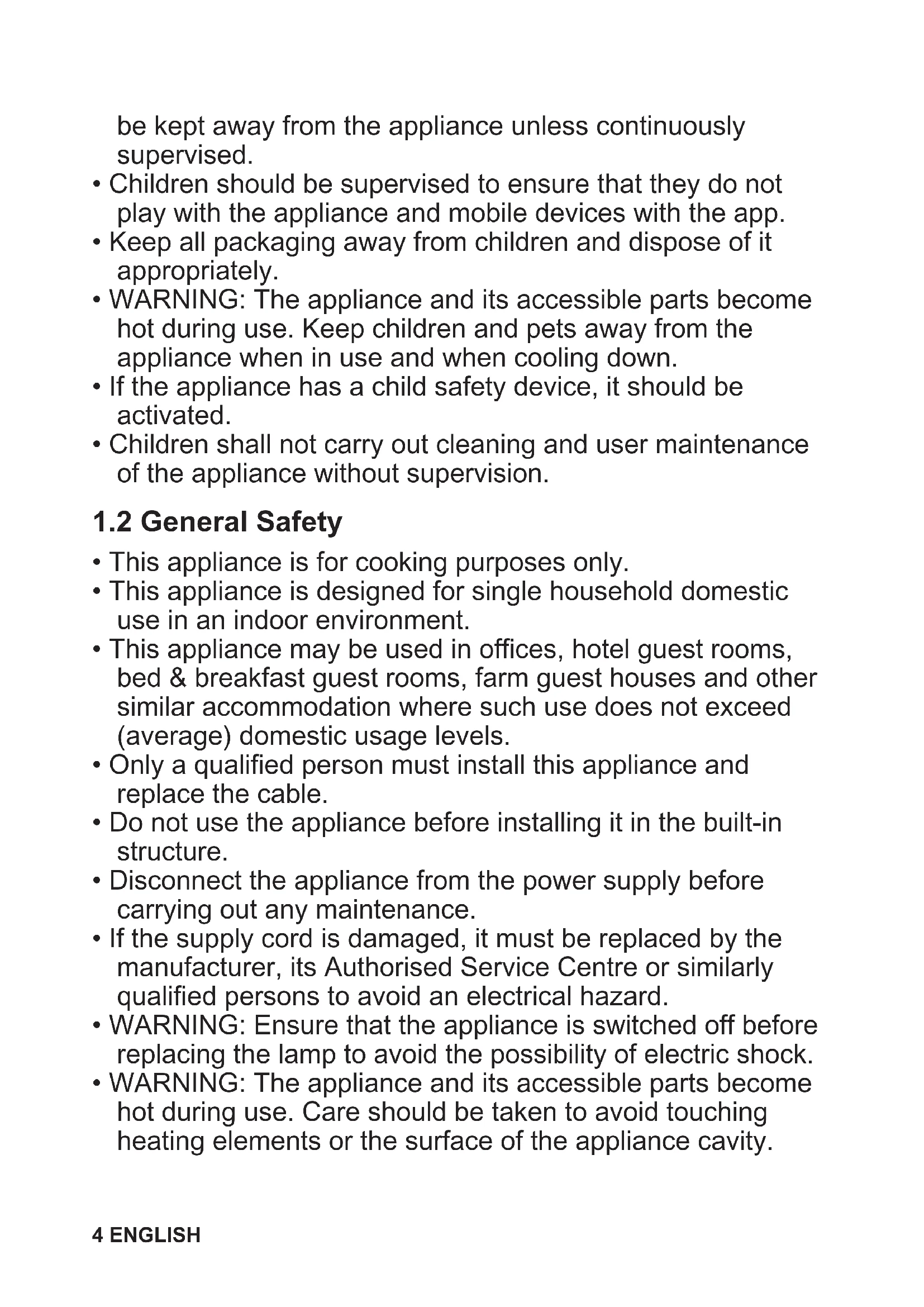 - This appliance can be used by children aged from 8 years and above and persons with reduced physical, sensory or mental capabilities or lack of experience and knowledge if they have been given supervision or instruction concerning the use of the appliance in a safe way and understand the hazards involved. Children of less than 8 years of age and persons with very extensive and complex disabilities shall ENGLISH 3be kept away from the appliance unless continuously supervised.