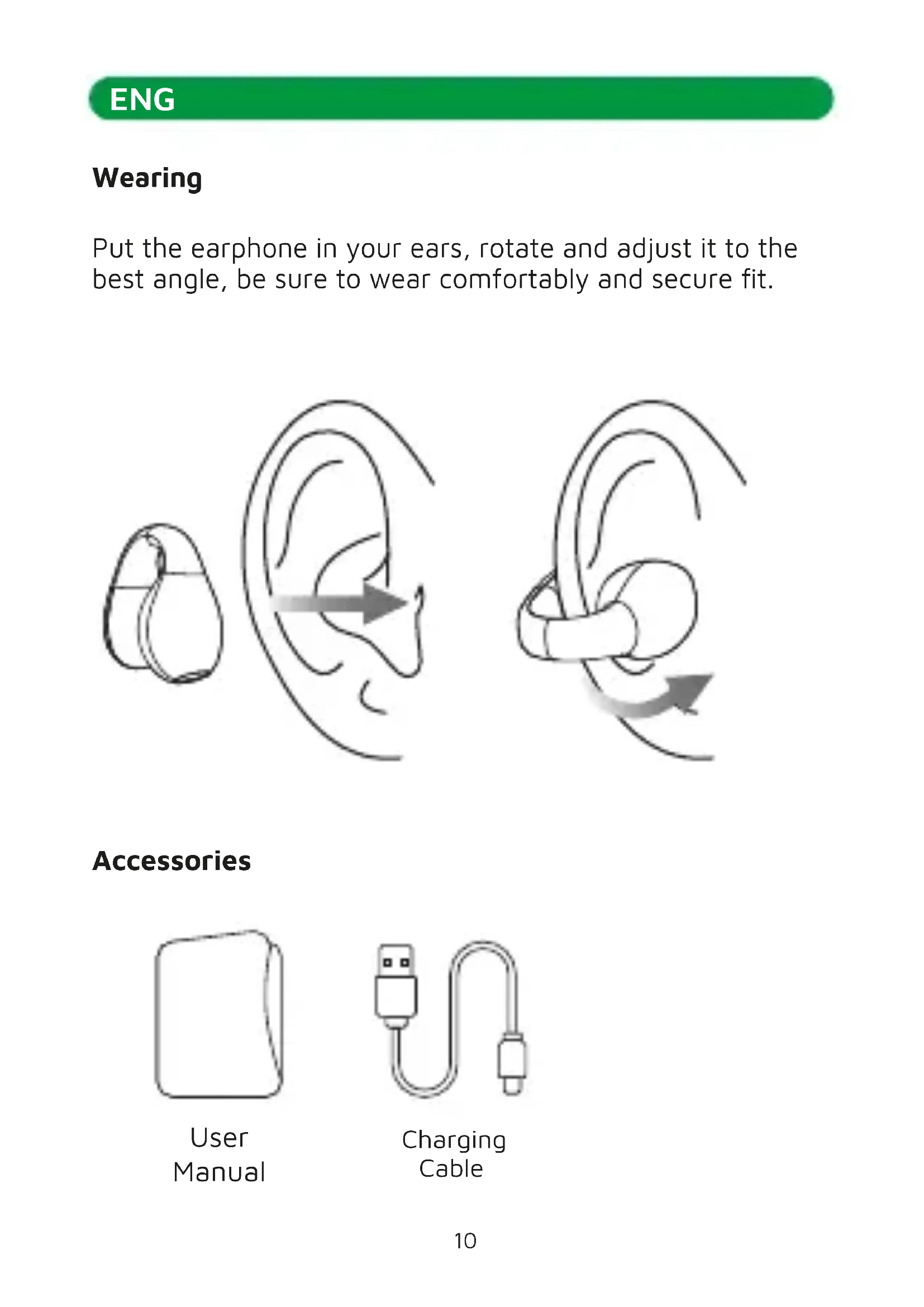 3. The earphone can only be charged by 5V DC charger, if
