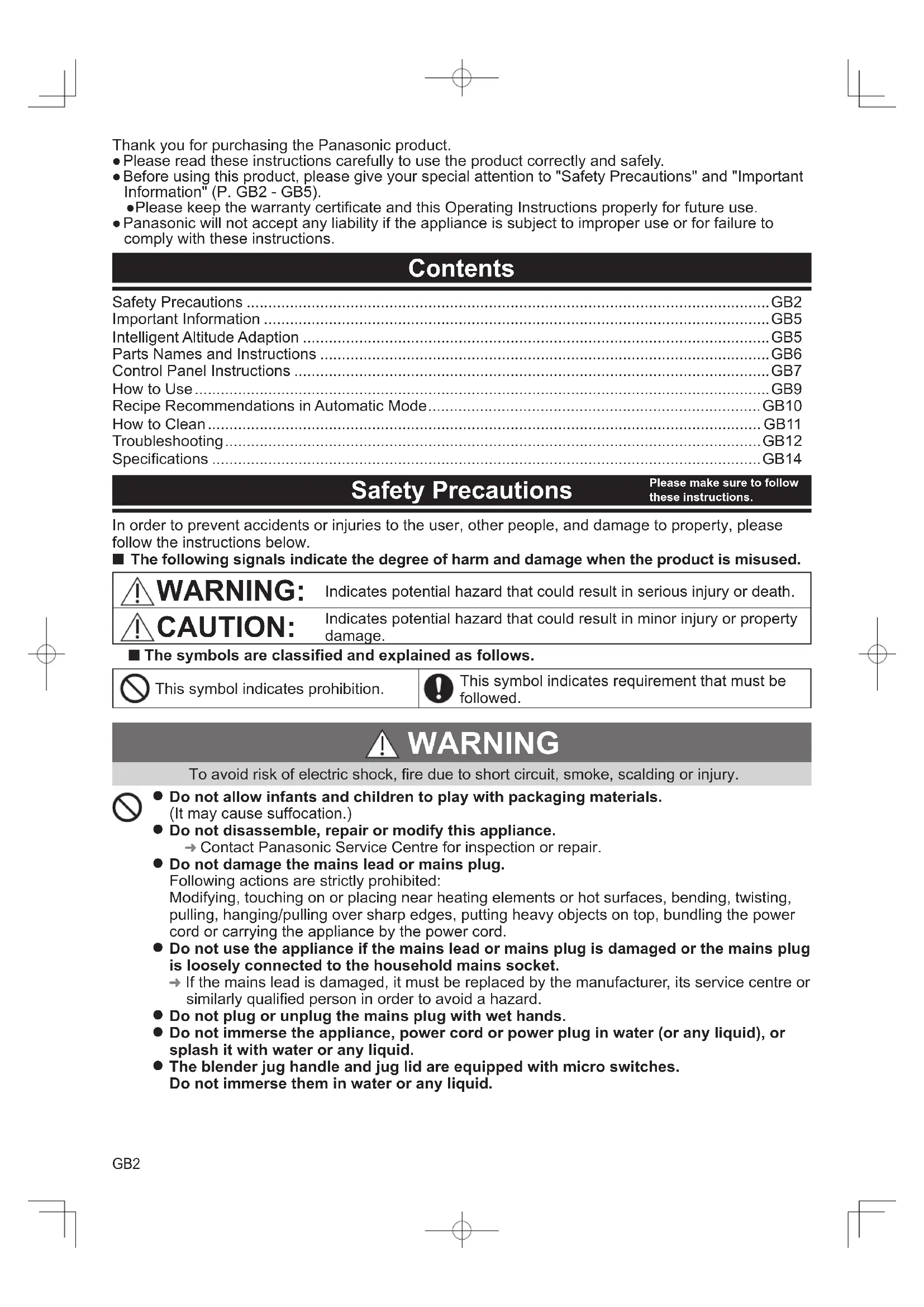 If food needs to be pushed down, use a suitable tool e.g. spatula.GB4 CAUTION To avoid risk of electric leakage, electric shock, fire due to short circuit, scalding, injury or property damage.