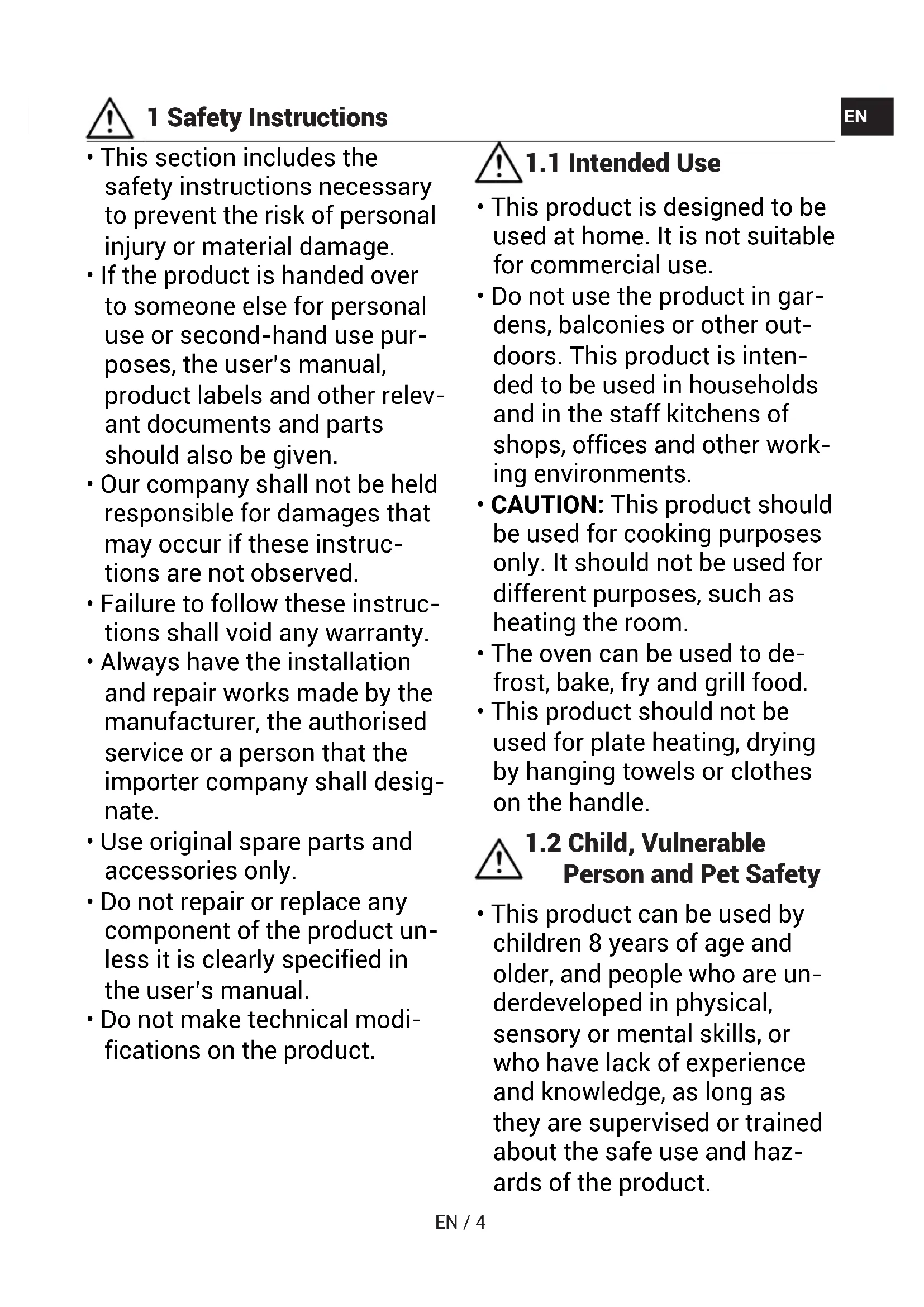 - CAUTION: This product should be used for cooking purposes only. It should not be used for different purposes, such as heating the room.