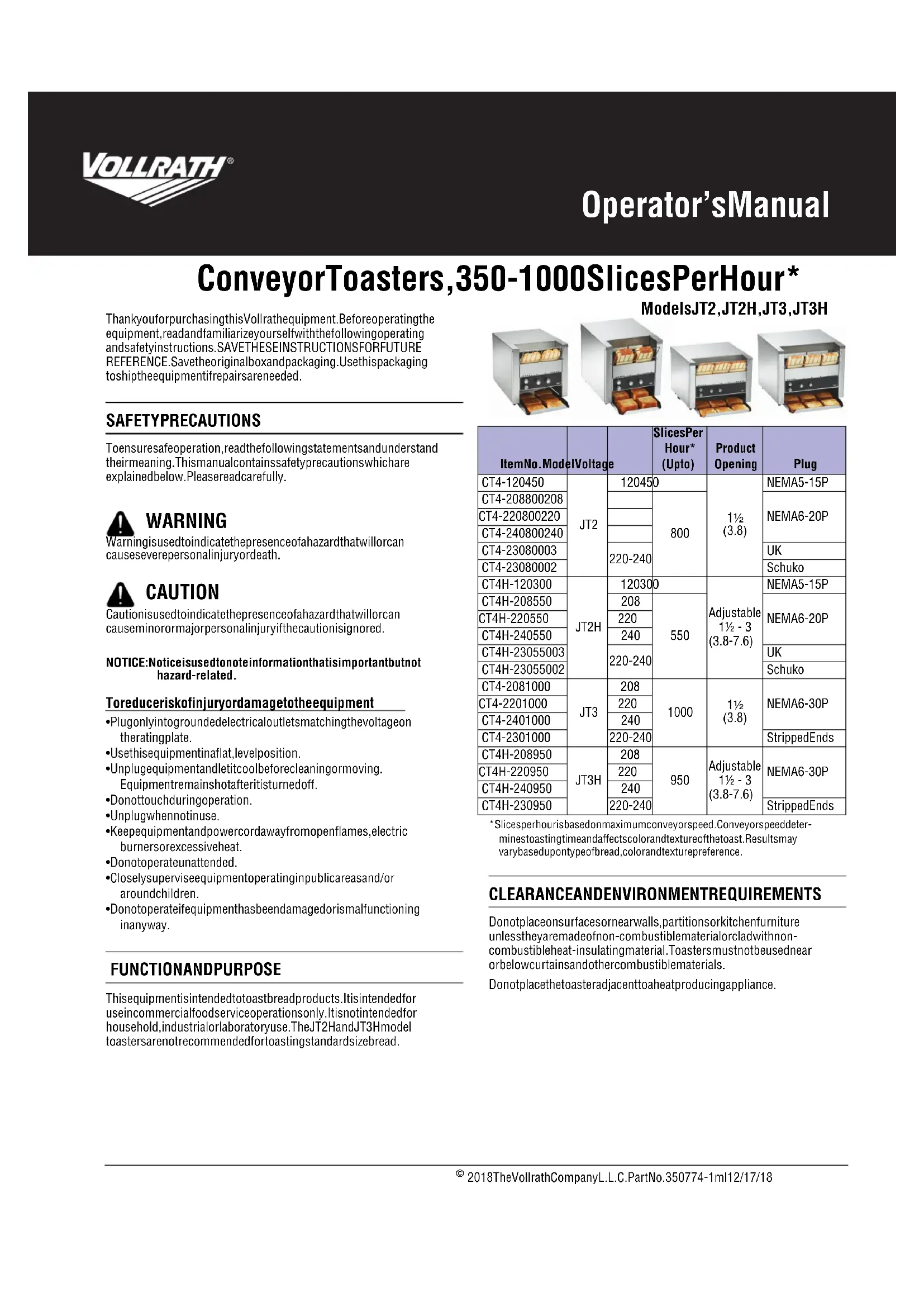 Download the instructions for your Toaster in PDF format for free! Find your manual JT3H - Vollrath and take your electronic device back in hand. On this page are published all the documents necessary for the use of your device. JT3H by Vollrath.
