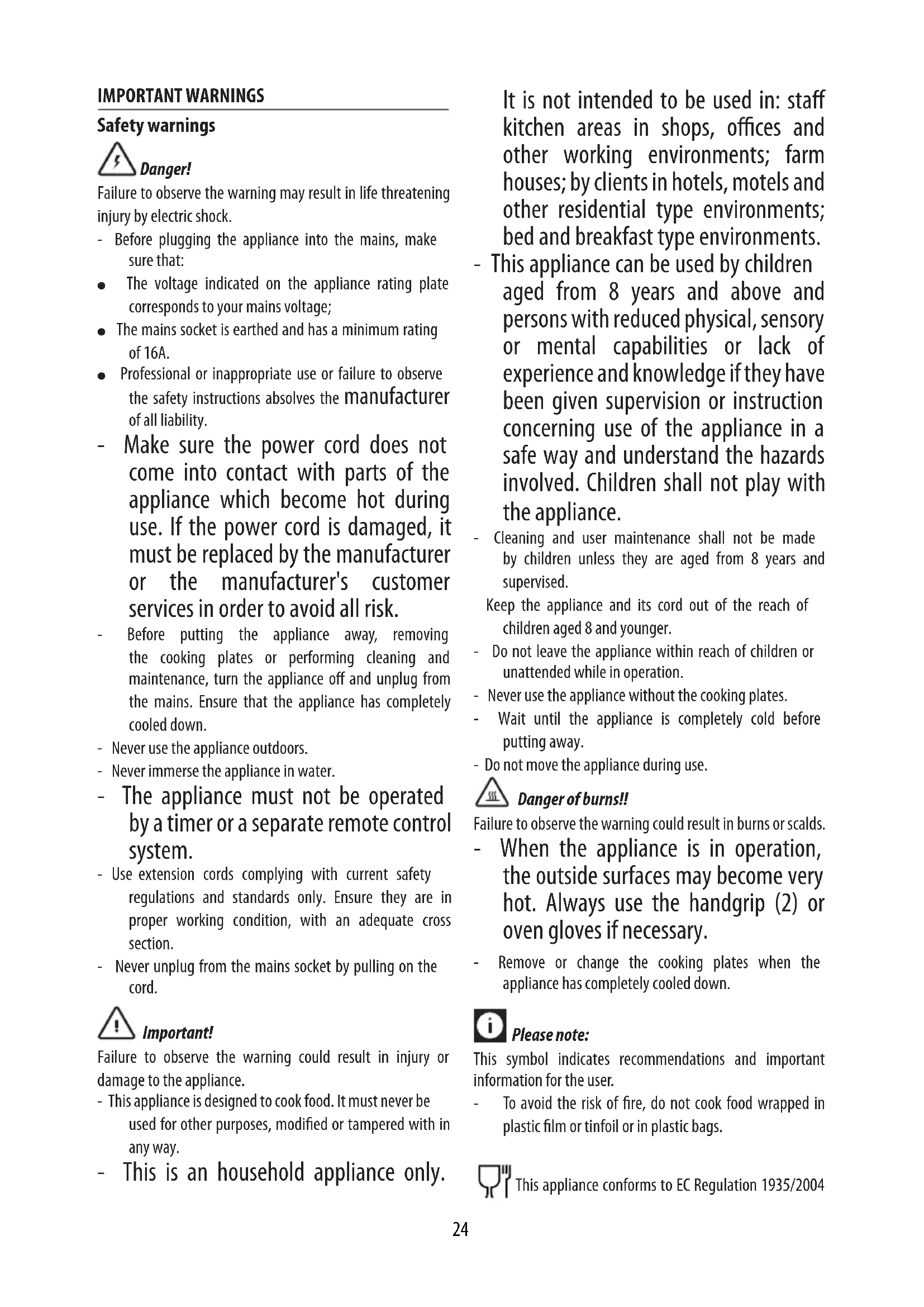 lower upper Pancakes 4 OPEN GRILL smooth ribbed 200 4 - 5 butter the plates, turn halfway through cooking Waes 4 CONTACT GRILL WAFFLE