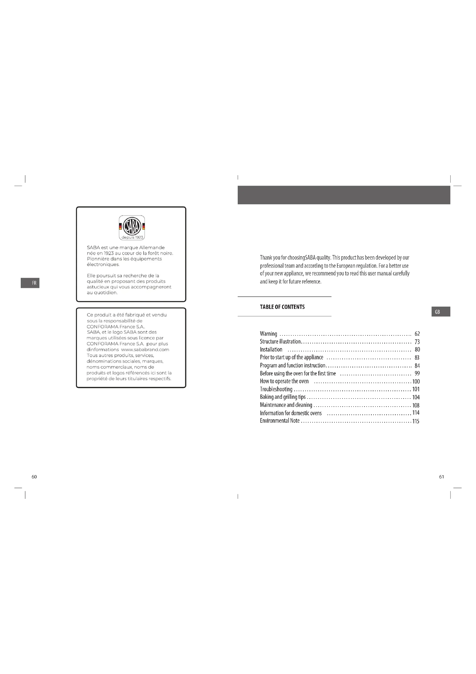 Thank you for choosingSABA quality. This product has been developed by our professional team and according to the European regulation. For a better use of your new appliance, we recommend you to read this user manual carefully and keep it for future reference.