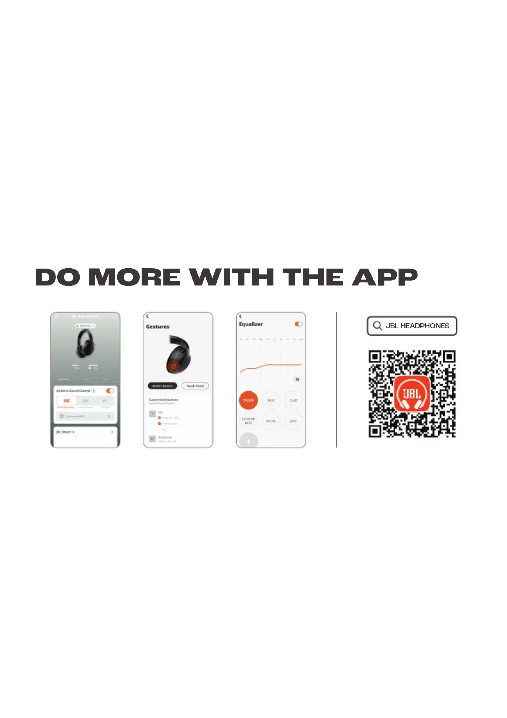- Enable advance controls by connecting your JBL TOUR ONE M3 to JBL Headphones app . Tap/Press × 1 Tap/Press × 2 Tap × 3 Hold (2s) Bixby/Siri