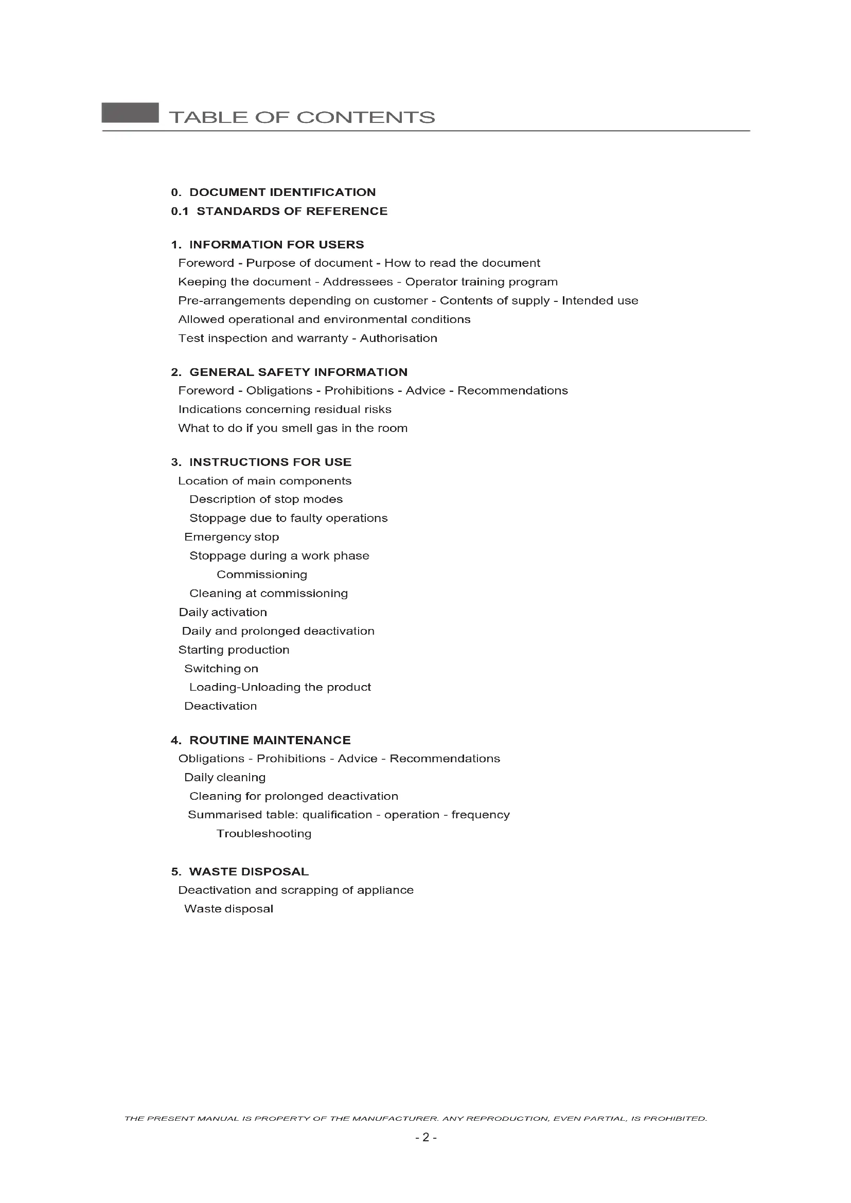 THE PRESENT MANUAL IS PROPERTY OF THE MANUFACTURER. ANY REPRODUCTION, EVEN PARTIAL, IS PROHIBITED.
