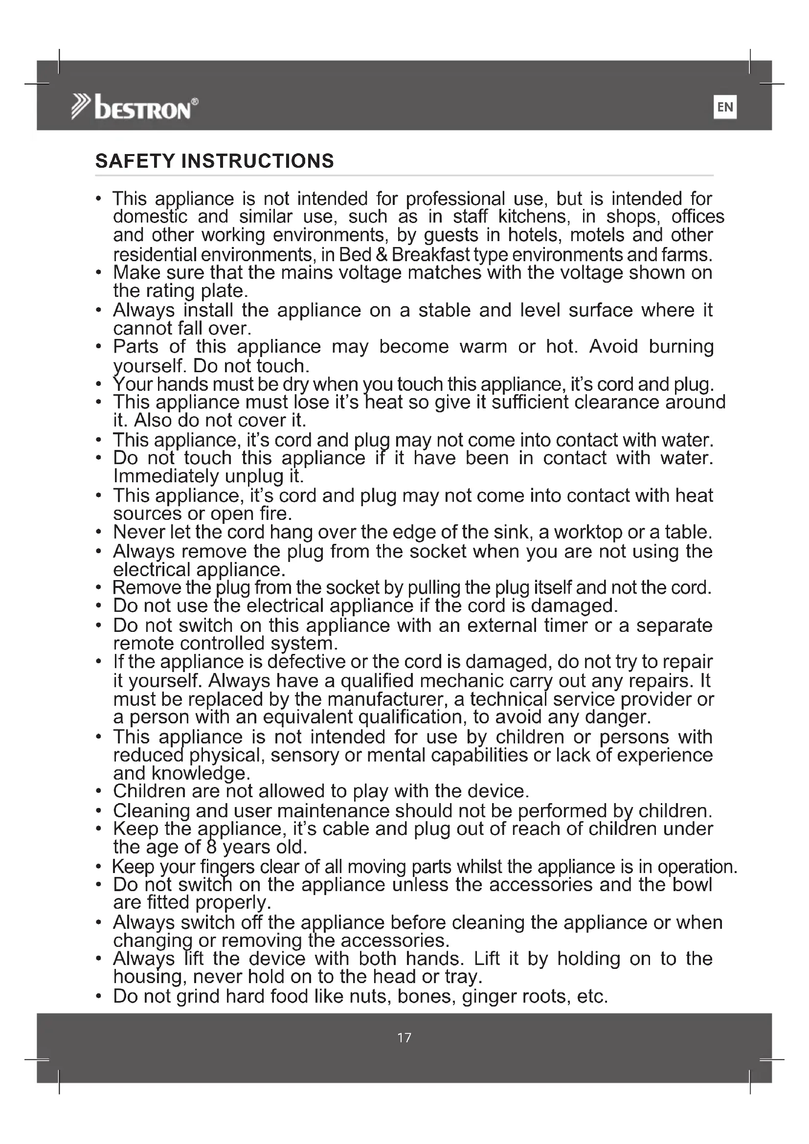 AMG300 - Food Processor BESTRON - Free user manual and instructions
