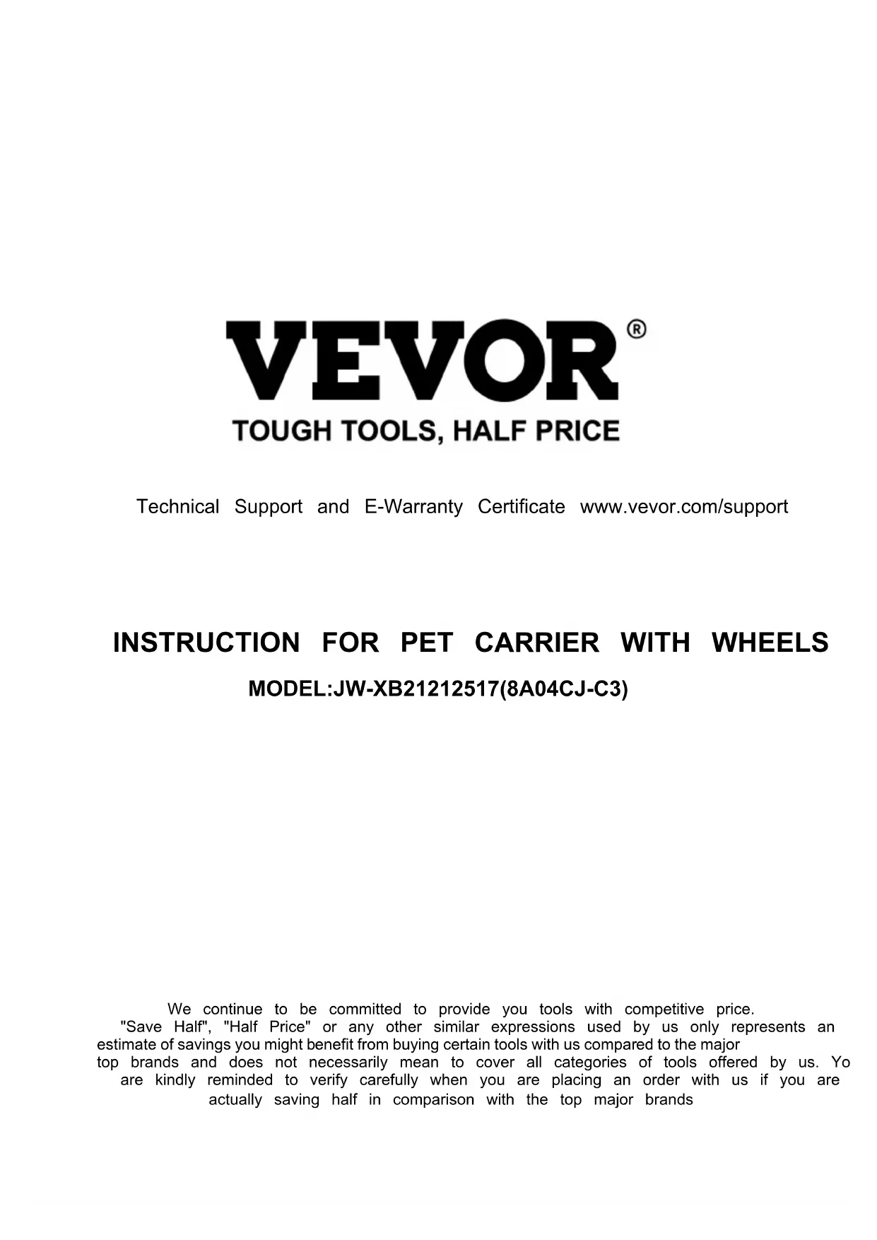JWXB212125178A04CJC3 - Pets Vevor - Free user manual and instructions