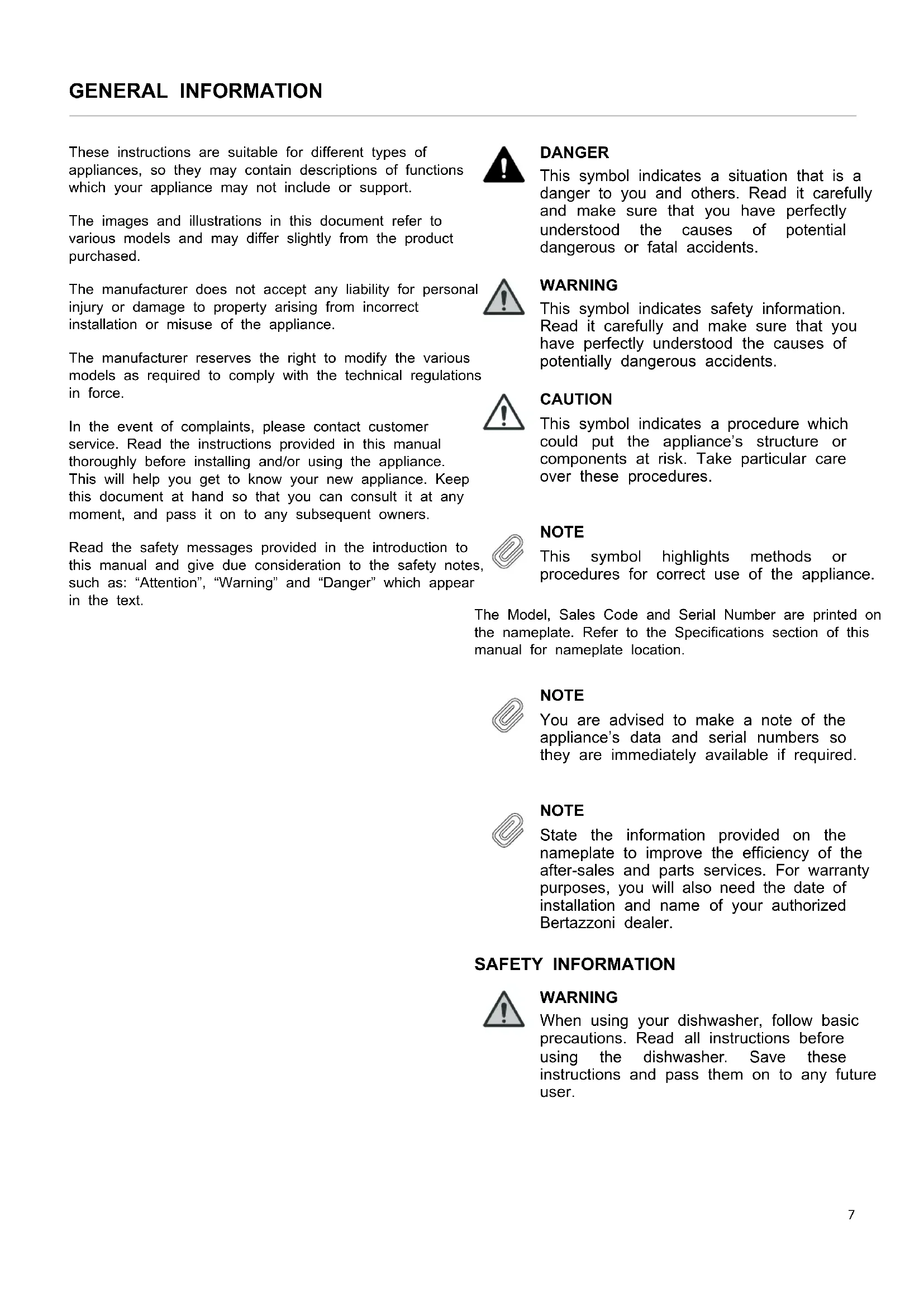 Download the instructions for your Dishwasher in PDF format for free! Find your manual DW60S3IBPSS - BERTAZZONI and take your electronic device back in hand. On this page are published all the documents necessary for the use of your device. DW60S3IBPSS by BERTAZZONI.
