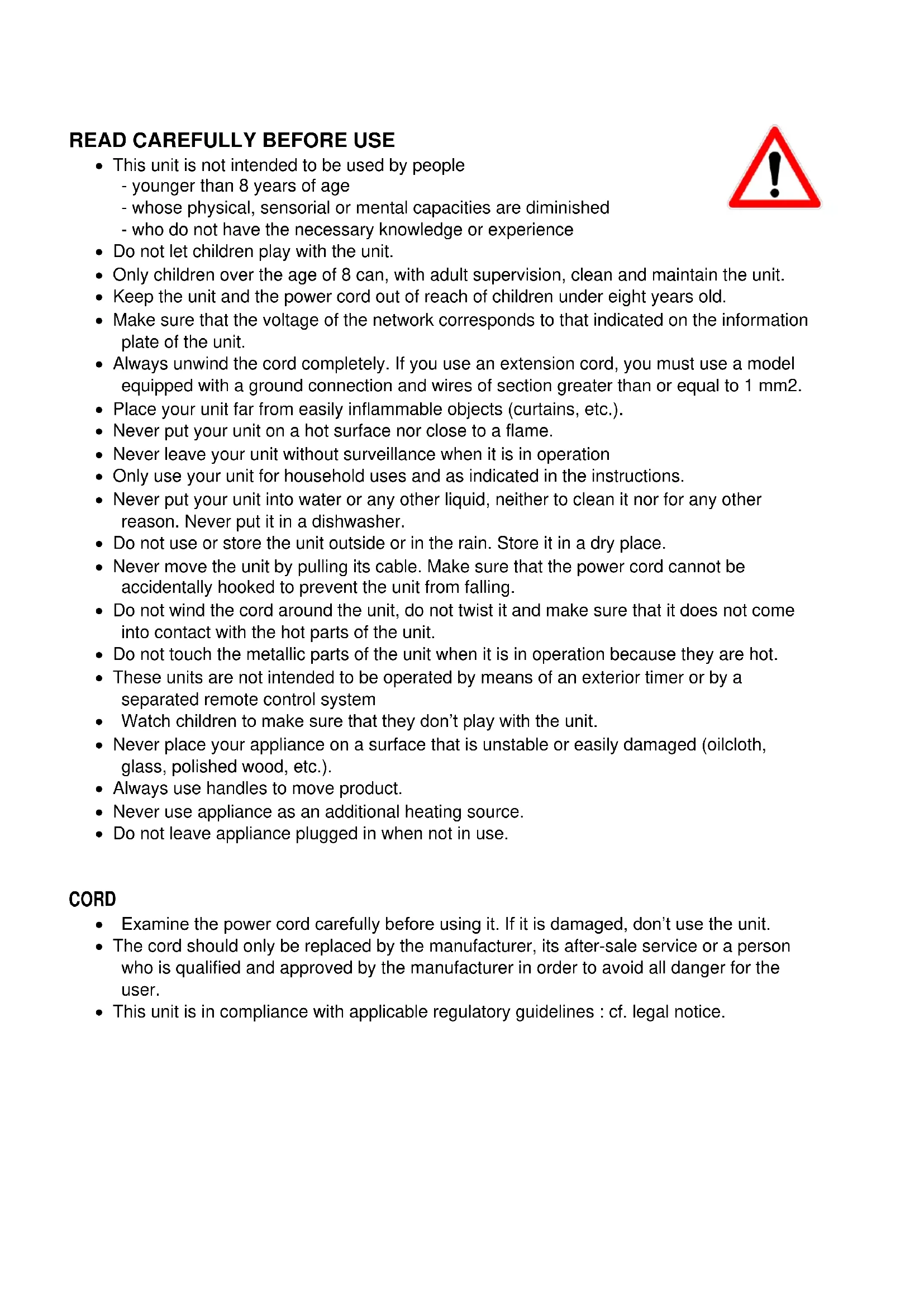 - The cord should only be replaced by the manufacturer, its after-sale service or a person who is qualified and approved by the manufacturer in order to avoid all danger for the user.