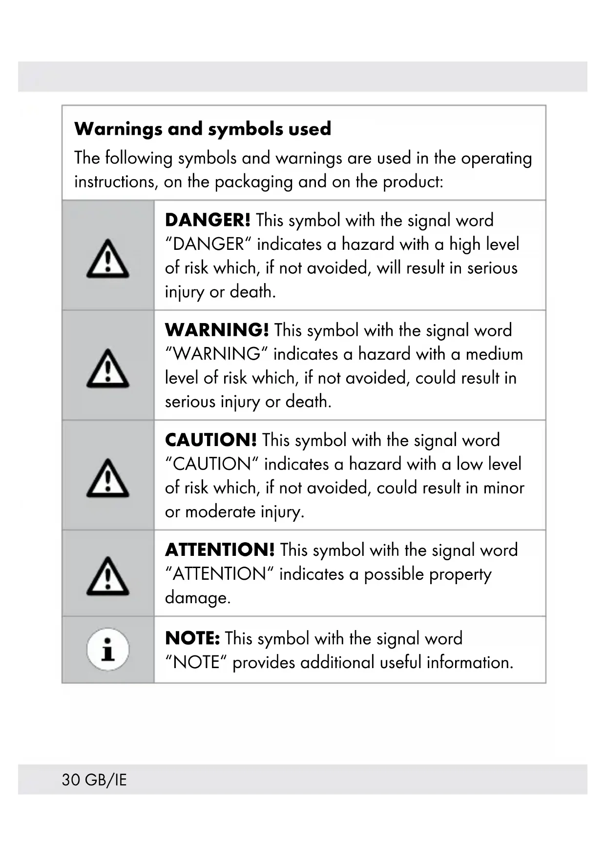 WARNING! During charging process, please be noticed that the product must not be covered. Otherwise the product can be heated.38 GB/IE The product should never be charged at a PC or notebook, because due to the high power consumption, the PC or notebook could be damaged. Before use NOTE: Remove all packaging materials from the product.