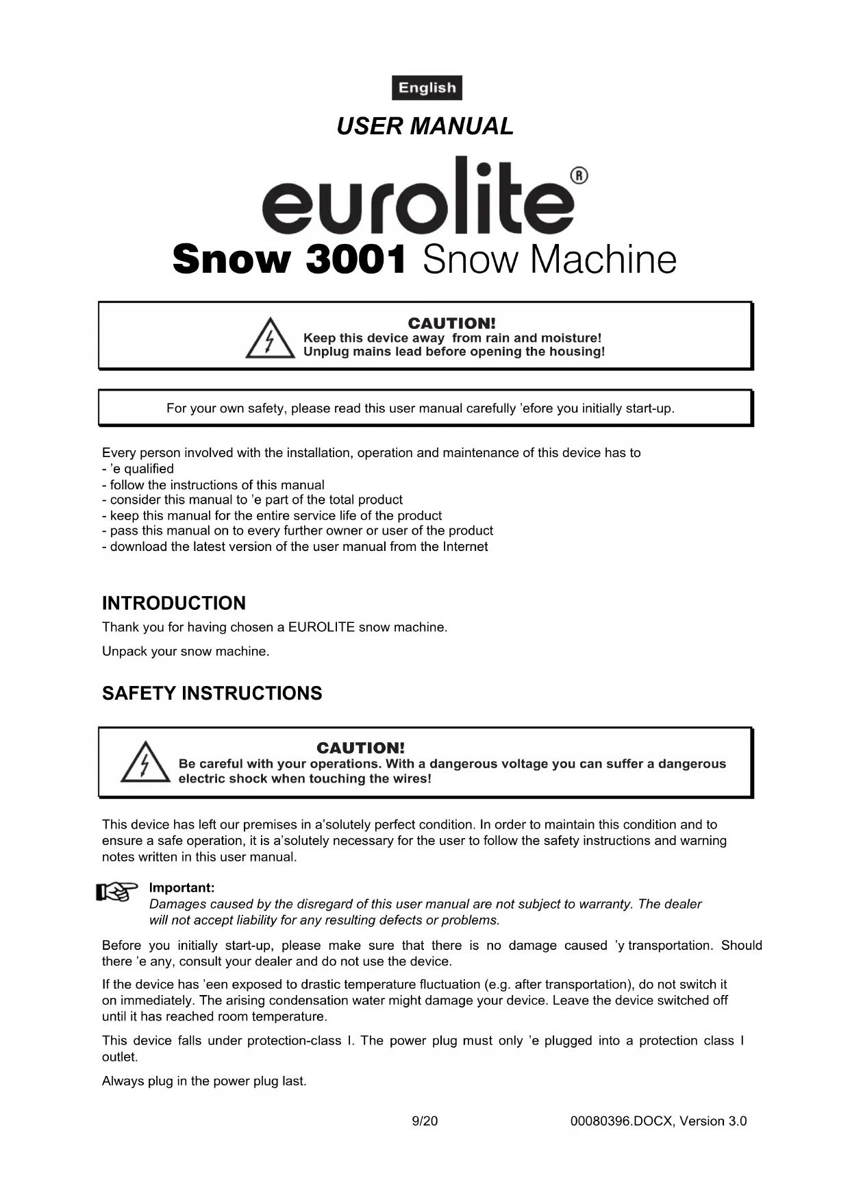 USER MANUAL Snow 3001 Eurolite