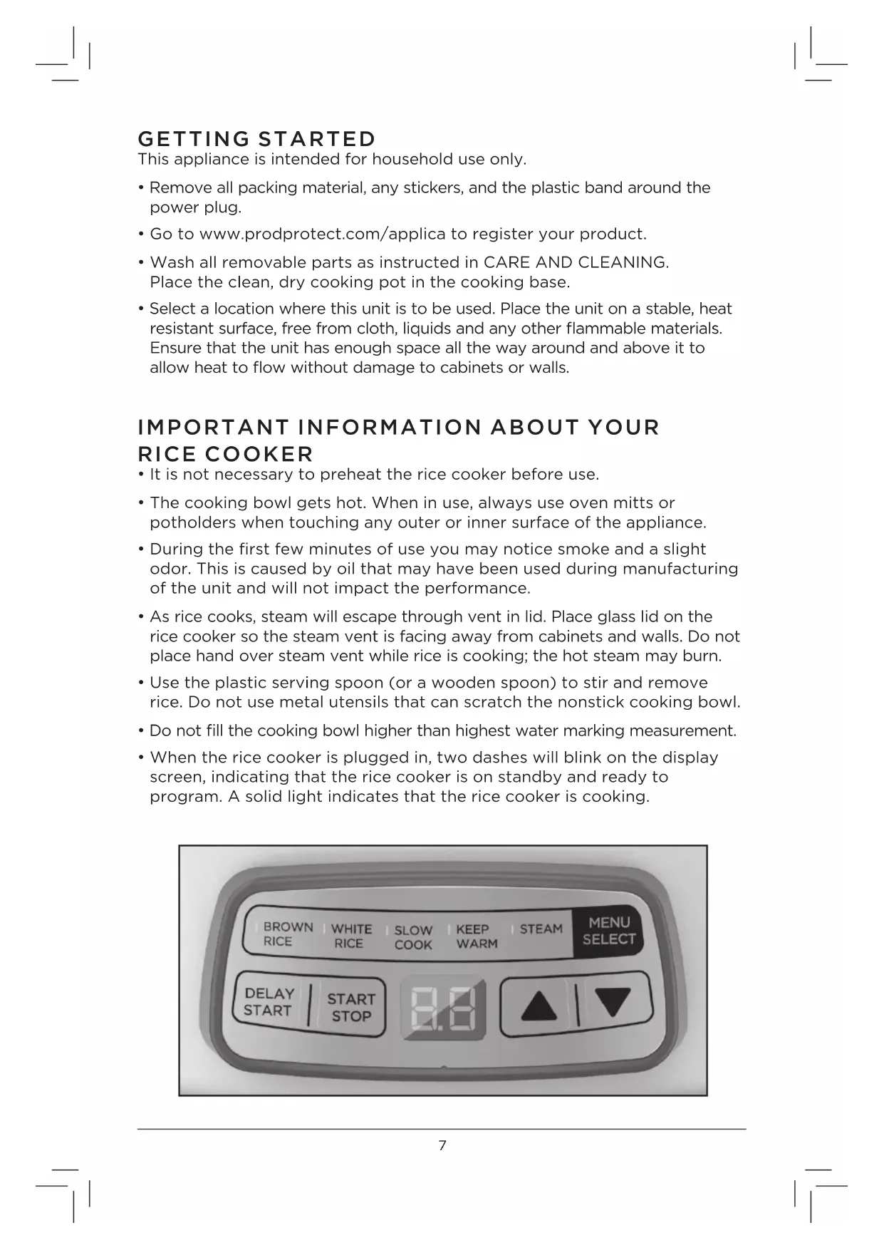GETTING STARTED This appliance is intended for household use only.