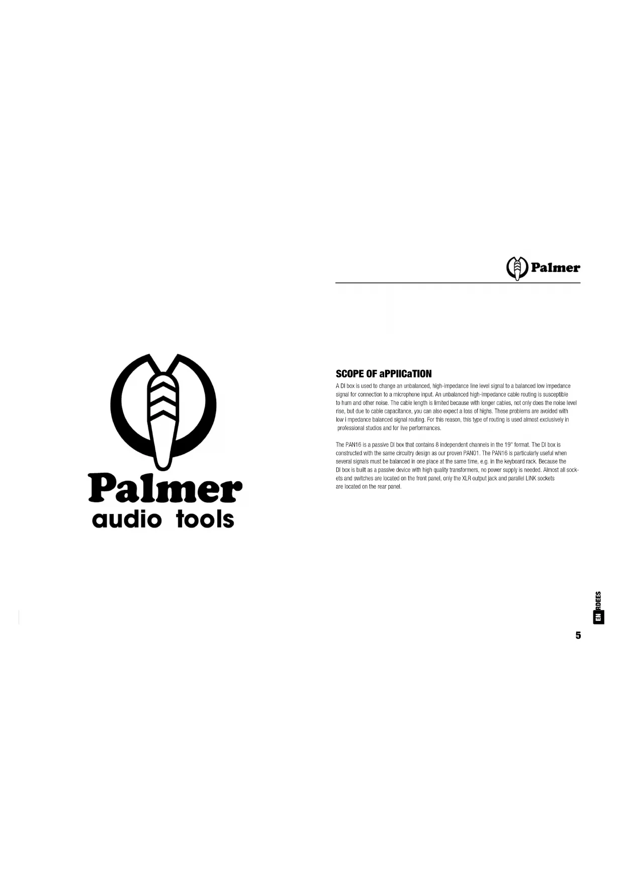 PAN16 - Professional audio equipment Palmer - Free user manual and instructions