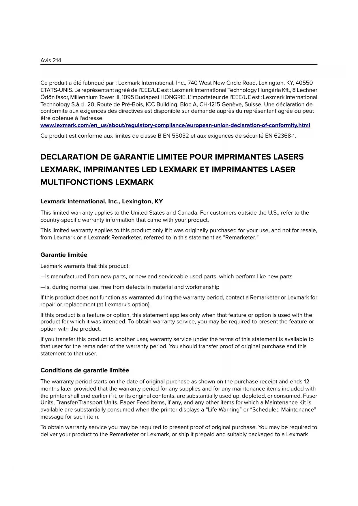 Download the instructions for your Printer in PDF format for free! Find your manual MB2236i - LEXMARK and take your electronic device back in hand. On this page are published all the documents necessary for the use of your device. MB2236i by LEXMARK.