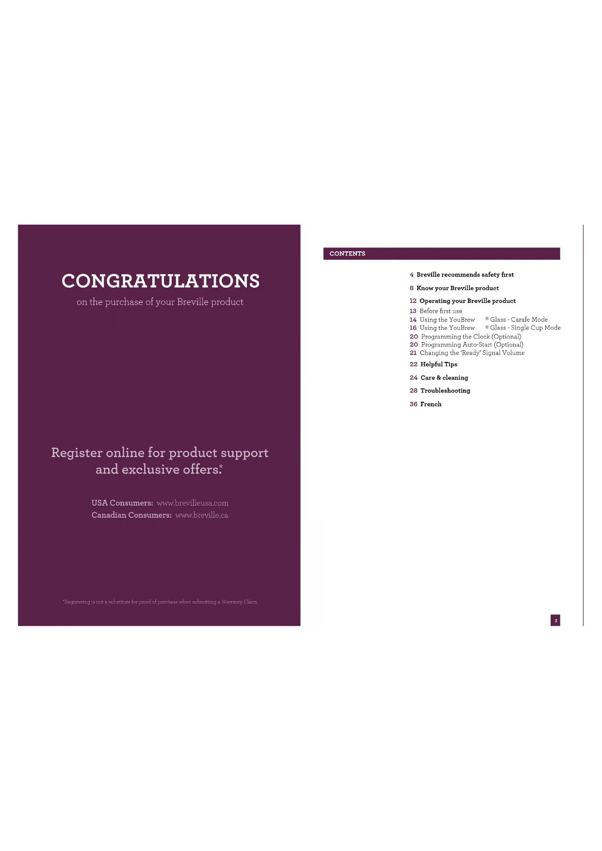 *Registering is not a substitute for proof of purchase when submitting a Warranty Claim.4 5 BREvILLE RECoMMEnDS SAFEty FIRStBREvILLE RECoMMEnDS SAFEty FIRSt