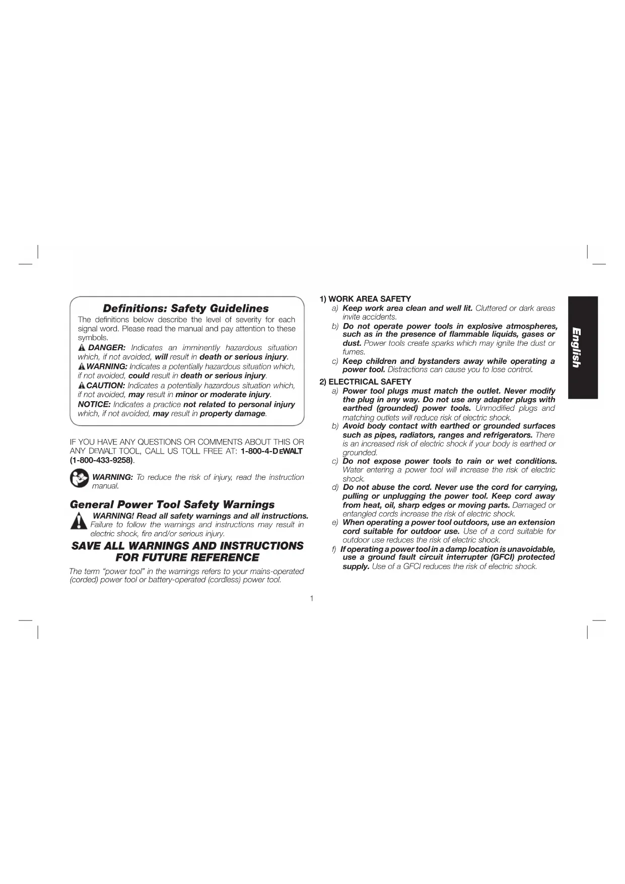 WALT • www.dewalt.com FINAL PRINT SIZE: HALF PAGE (5.5 X 8")Definitions: Safety Guidelines The definitions below describe the level of severity for each signal word. Please read the manual and pay attention to these symbols.