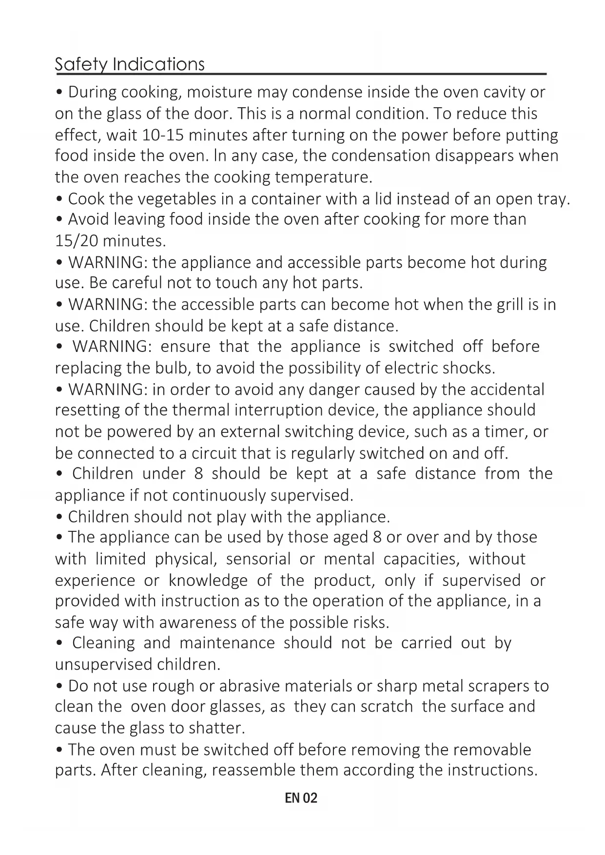 - Avoid leaving food inside the oven after cooking for more than 15/20 minutes.