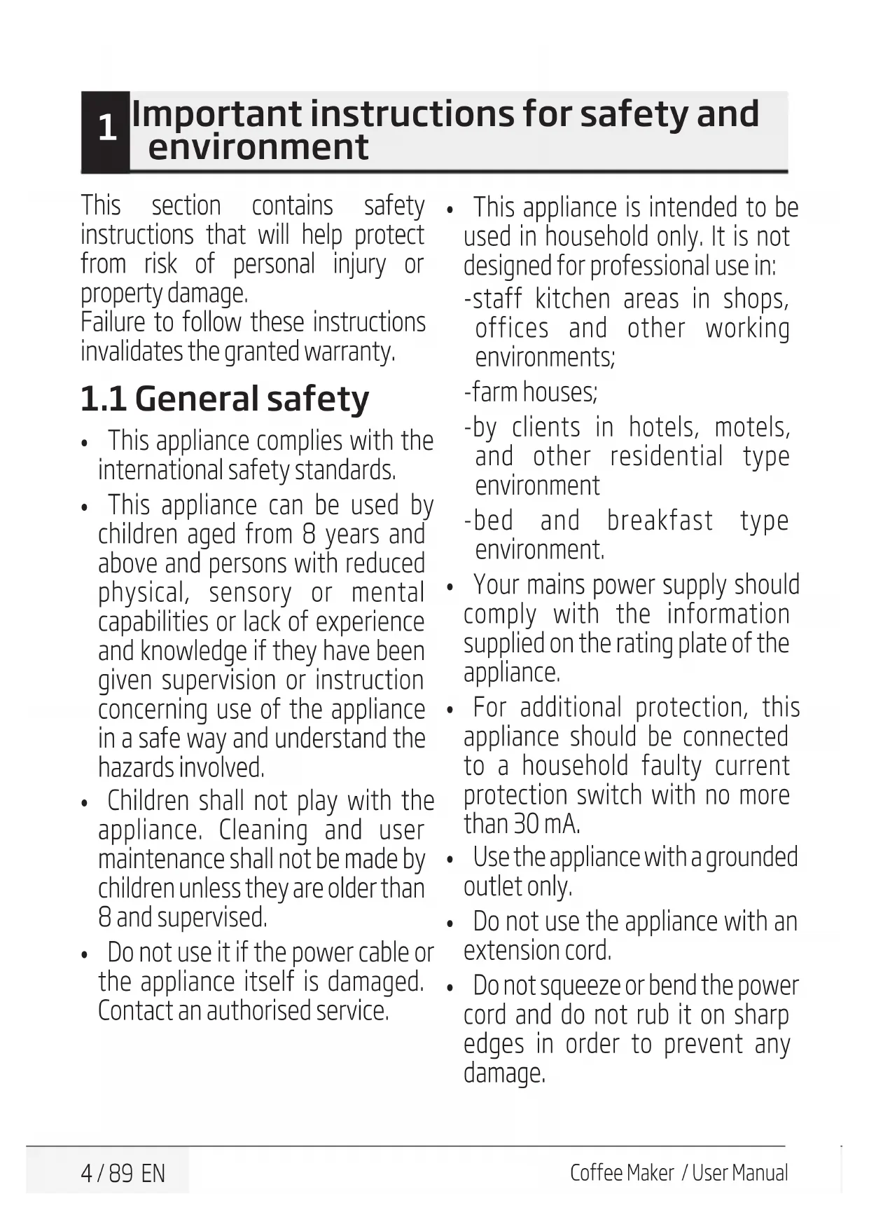 Important instructions for safety and environment5 / 89 EN Coffee Maker / User Manual