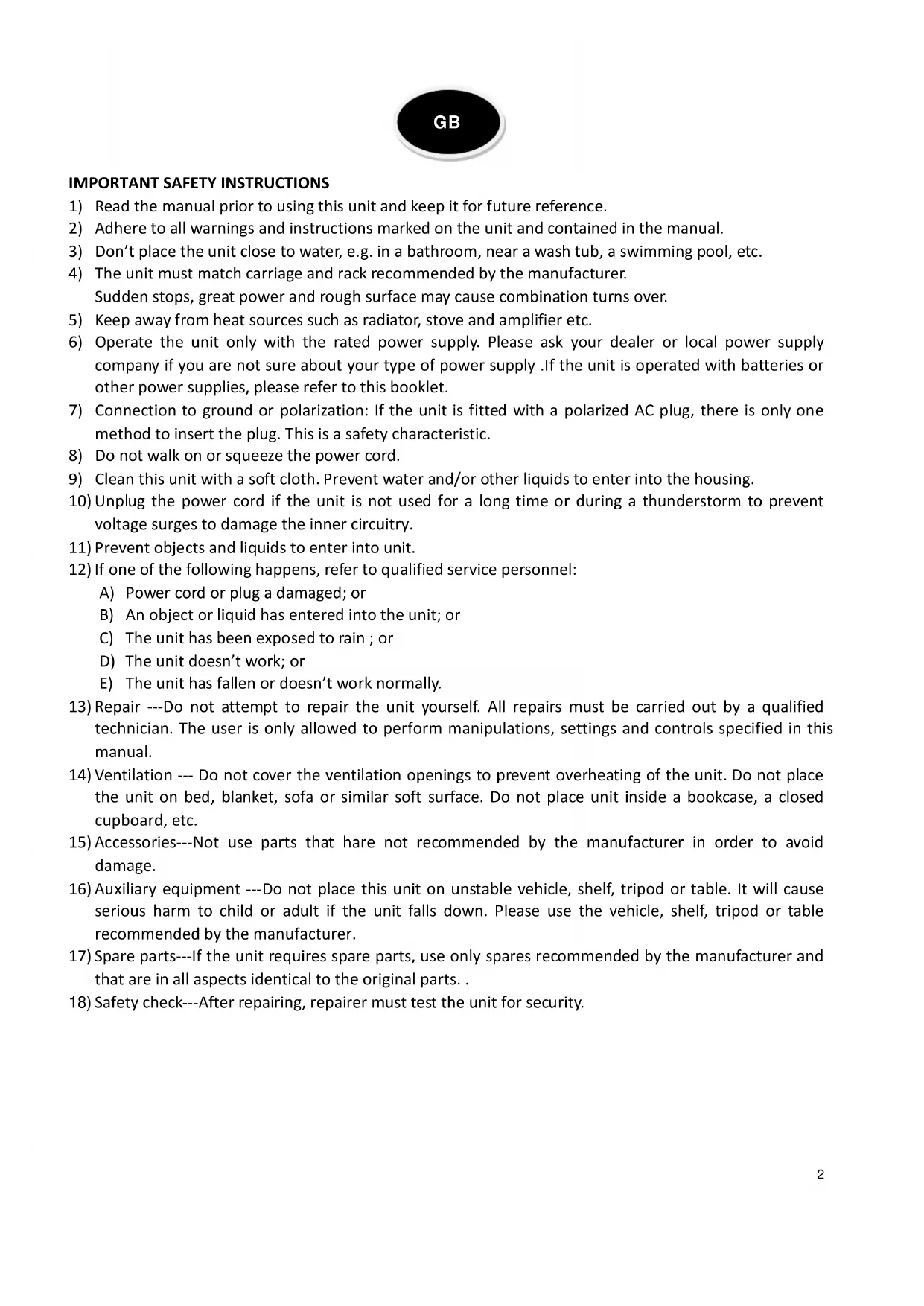 13) Repair ---Do not attempt to repair the unit yourself. All repairs must be carried out by a qualified