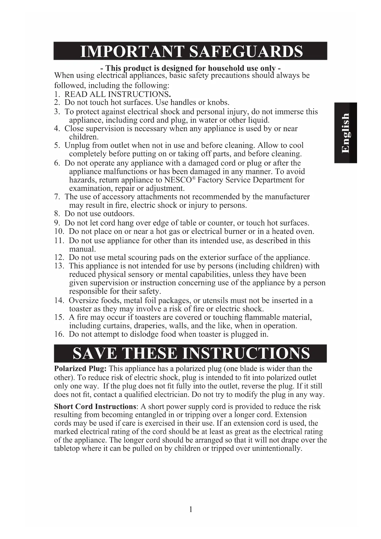 Download the instructions for your Toaster in PDF format for free! Find your manual T160013 - Nesco and take your electronic device back in hand. On this page are published all the documents necessary for the use of your device. T160013 by Nesco.