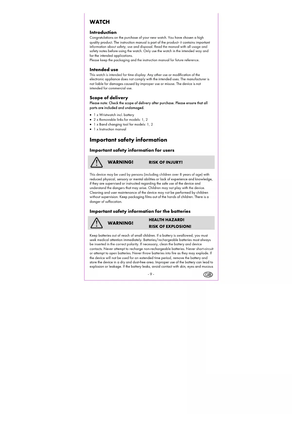 WATCH Usage and safety instructions