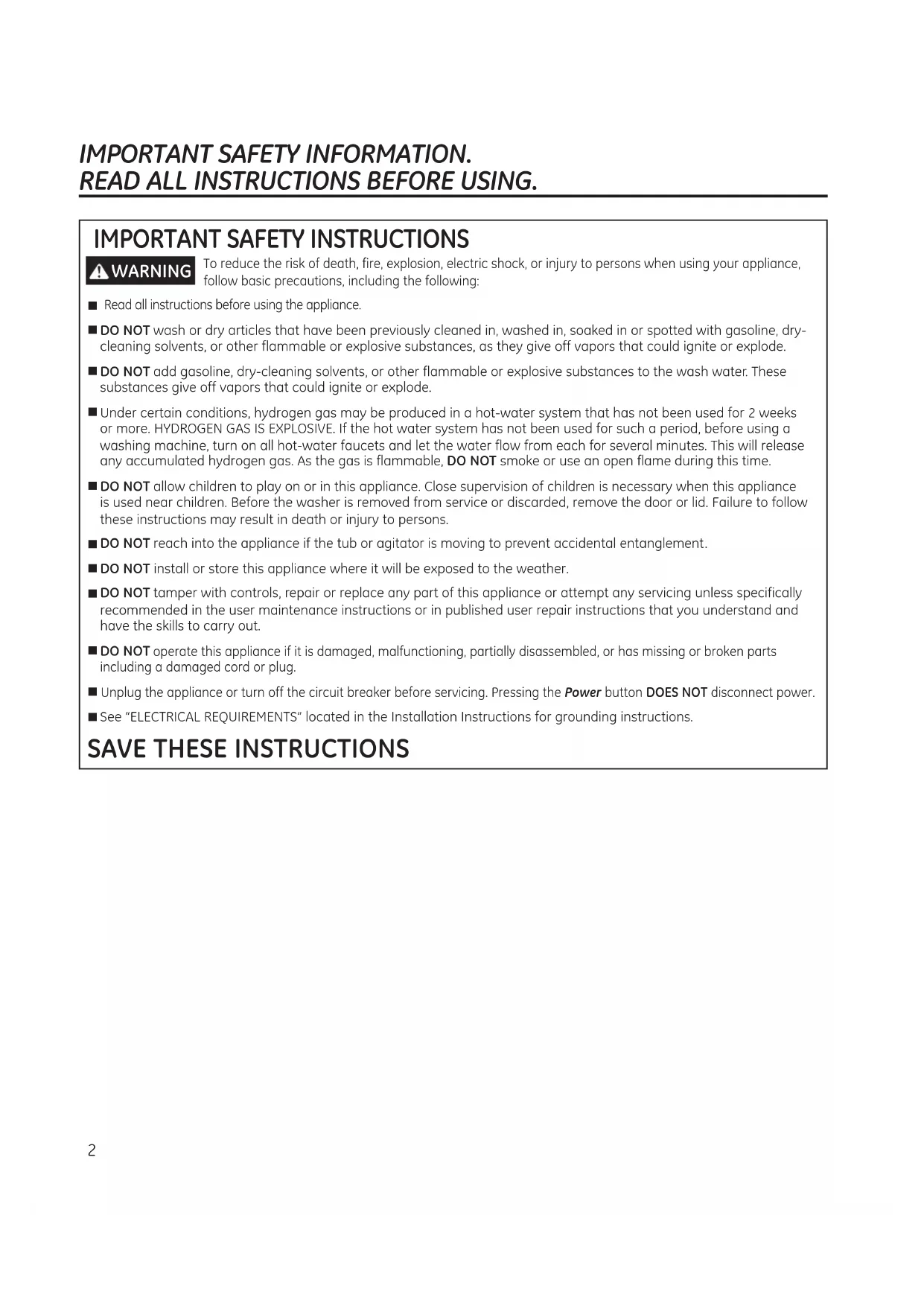 To reduce the risk of fire, electric shock, or injury to persons, read the IMPORTANT SAFETY INSTRUCTIONS before operating this appliance. WARNING5 GEAppliances.com
