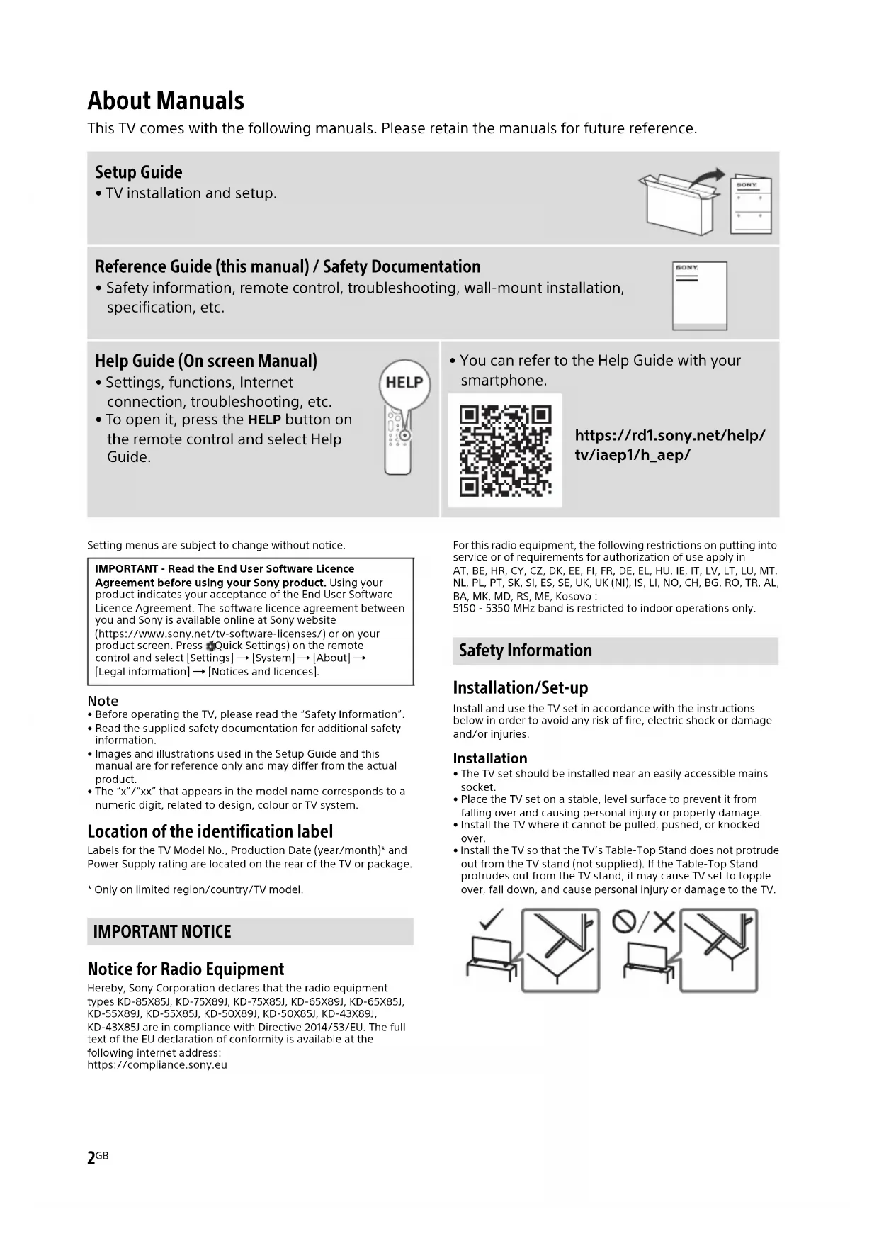Download the instructions for your TV in PDF format for free! Find your manual KD85X85TJ - SONY and take your electronic device back in hand. On this page are published all the documents necessary for the use of your device. KD85X85TJ by SONY.