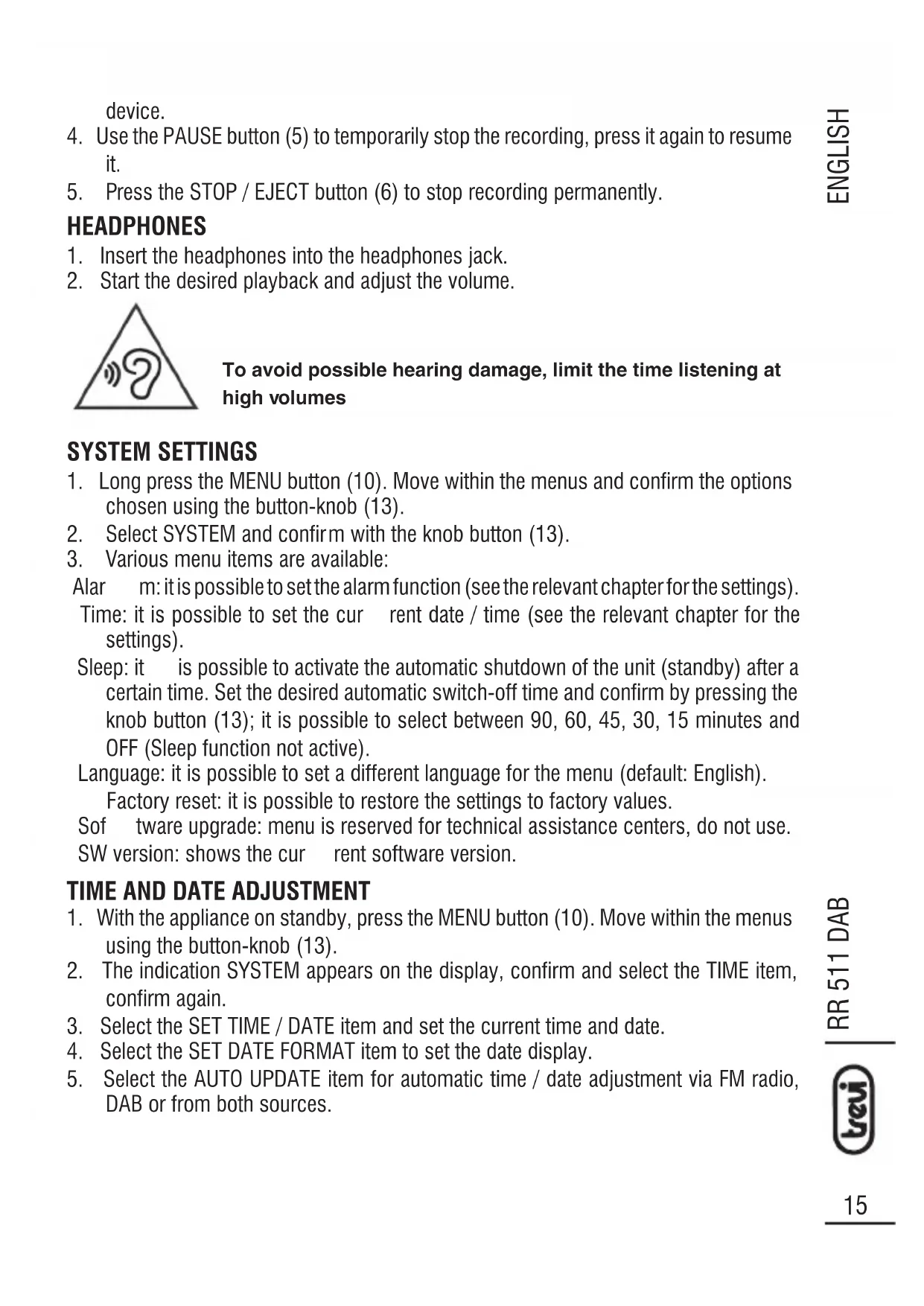 USER MANUAL RR 511 DAB Trevi