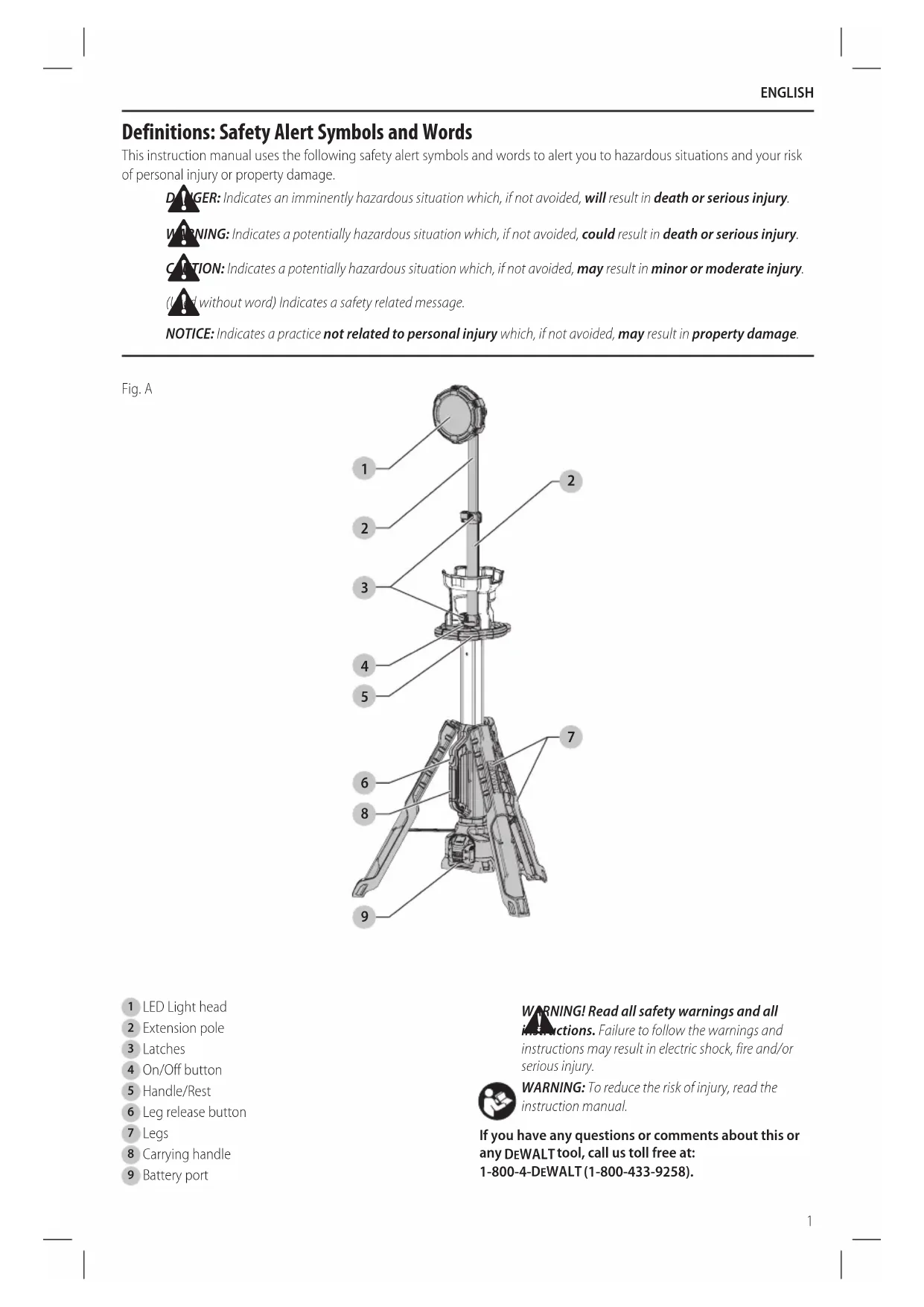 instructions for the battery pack, charger and tripod light. Failure to follow the warnings and instructions may result in electric shock, fire and/ or seriousinjury.