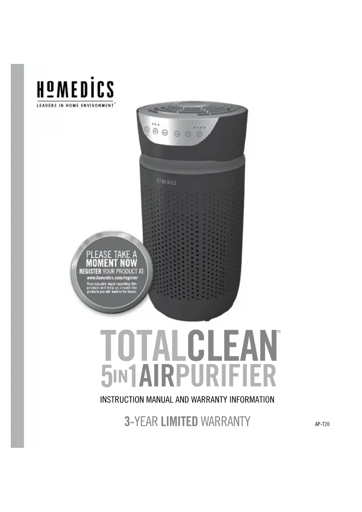 TotalClean APT20WT - Air purifier HOMEDICS - Free user manual and instructions