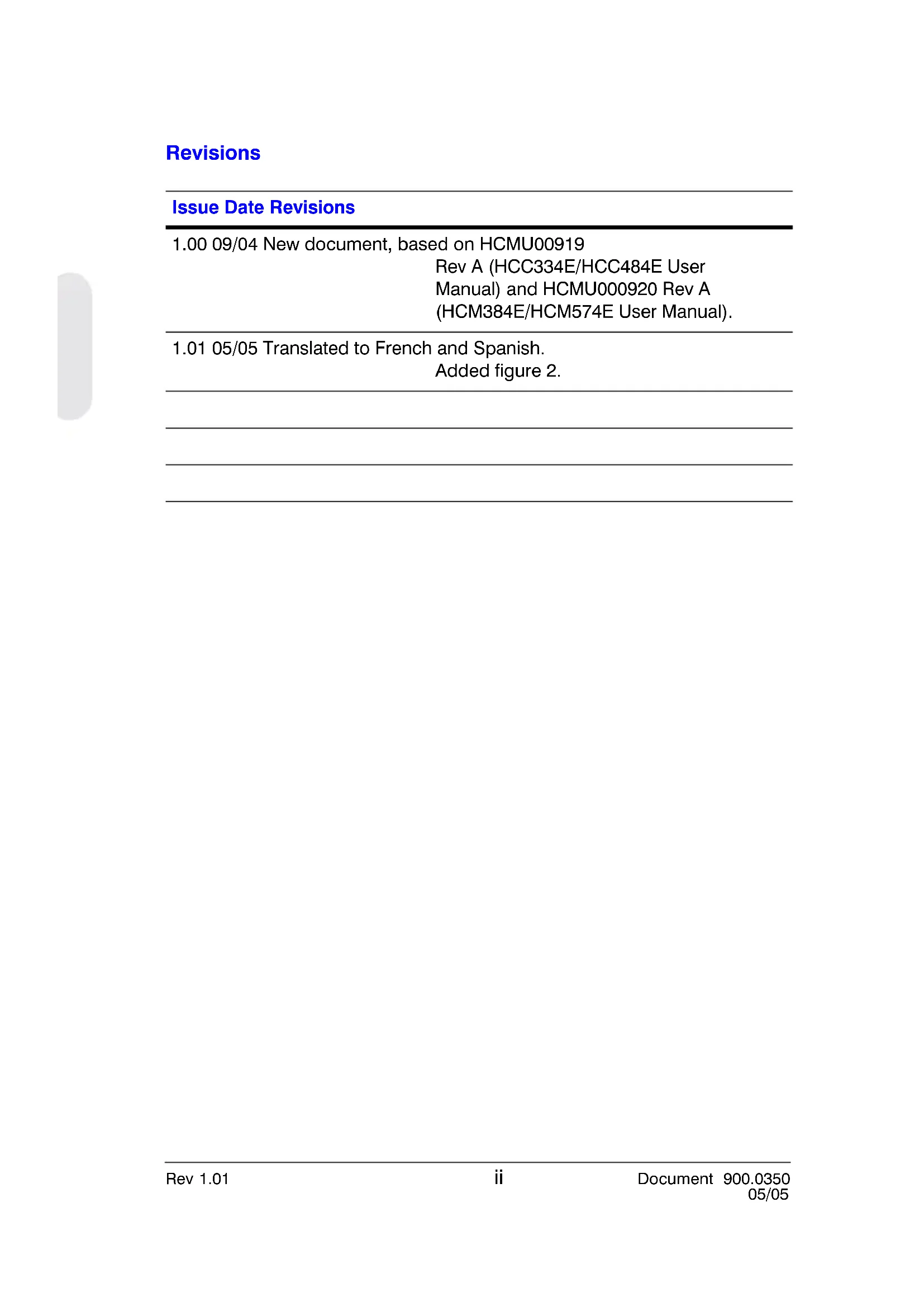 Rev A (HCC334E/HCC484E User Manual) and HCMU000920 Rev A (HCM384E/HCM574E User Manual).