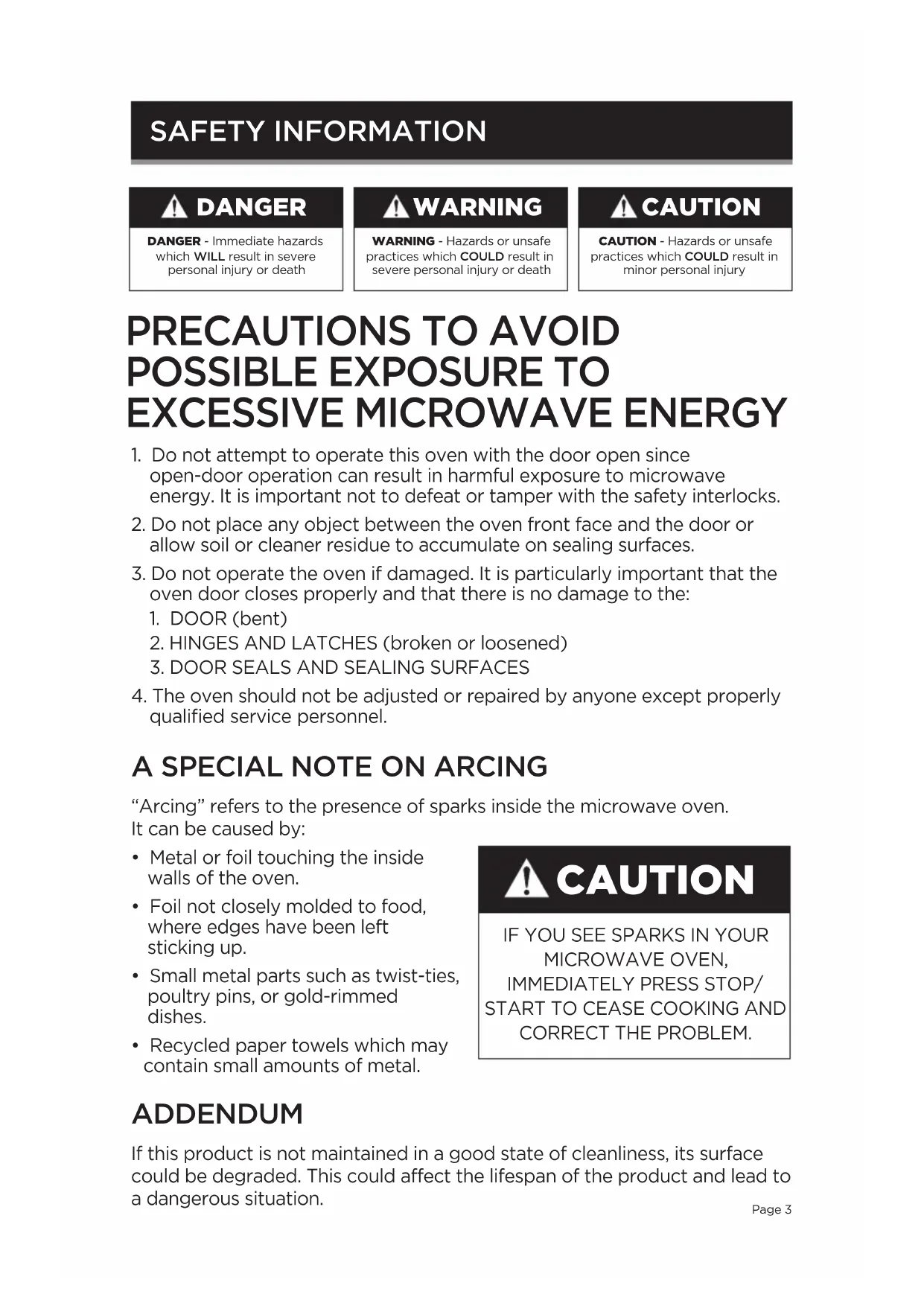 injury to persons or exposure to excessive microwave energy: SAFETY INFORMATIONPage 5