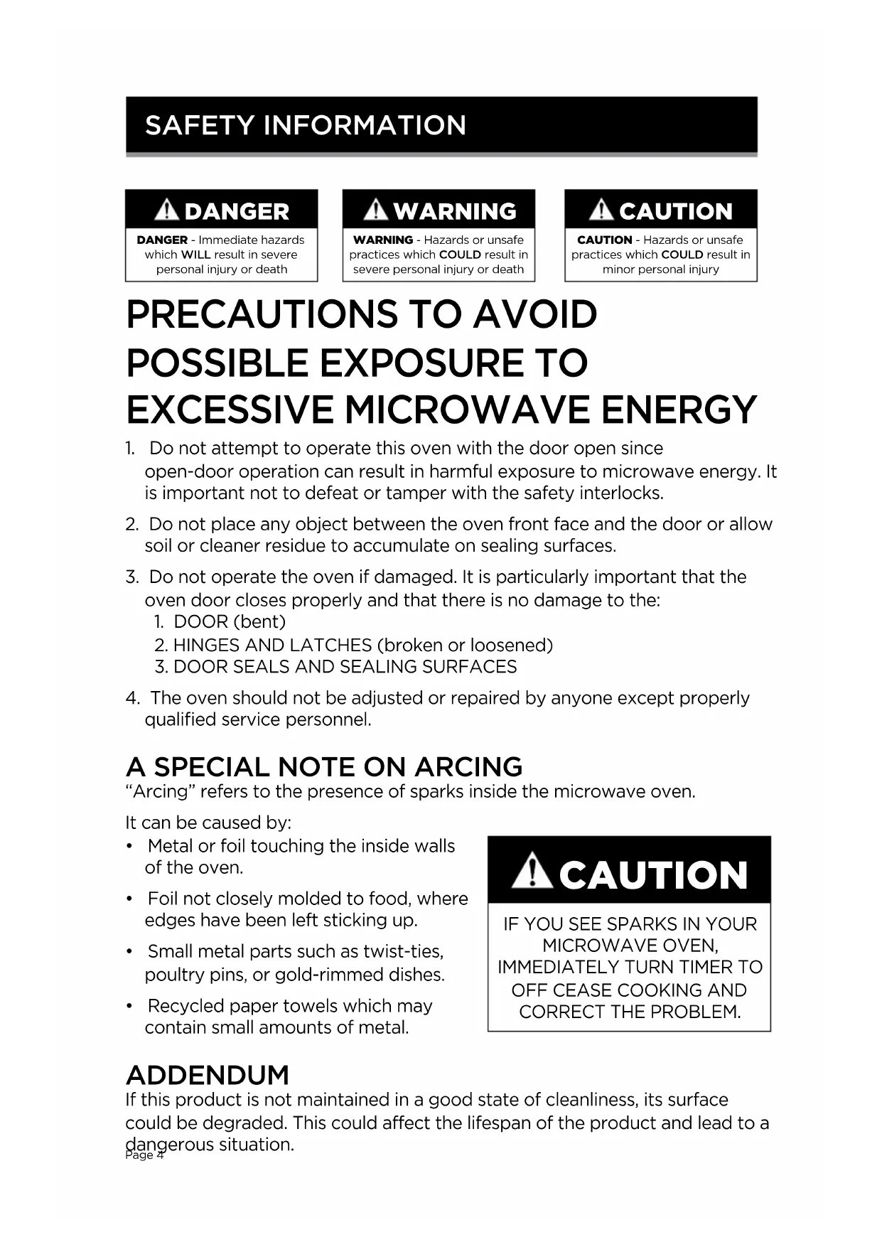injury to persons or exposure to excessive microwave energy: SAFETY INFORMATIONPage 6