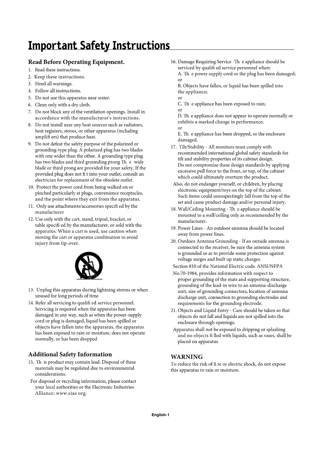 21. Objects and Liquid Entry - Care should be taken so that