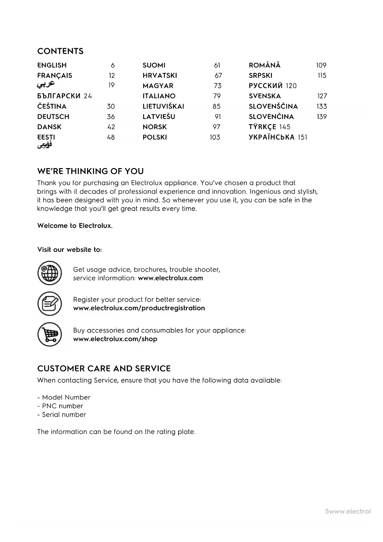 Thank you for purchasing an Electrolux appliance. You’ve chosen a product that brings with it decades of professional experience and innovation. Ingenious and stylish, it has been designed with you in mind. So whenever you use it, you can be safe in the knowledge that you’ll get great results every time. Welcome to Electrolux.