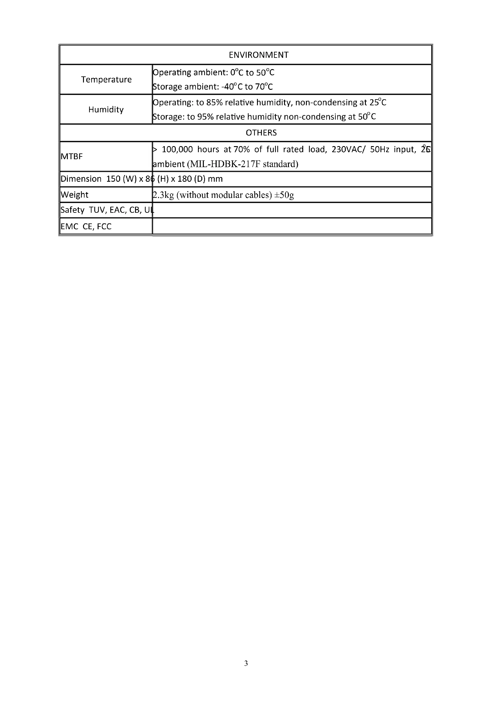 OTHERS MTBF > 100,000 hours at 70% of full rated load, 230VAC/ 50Hz input, 25