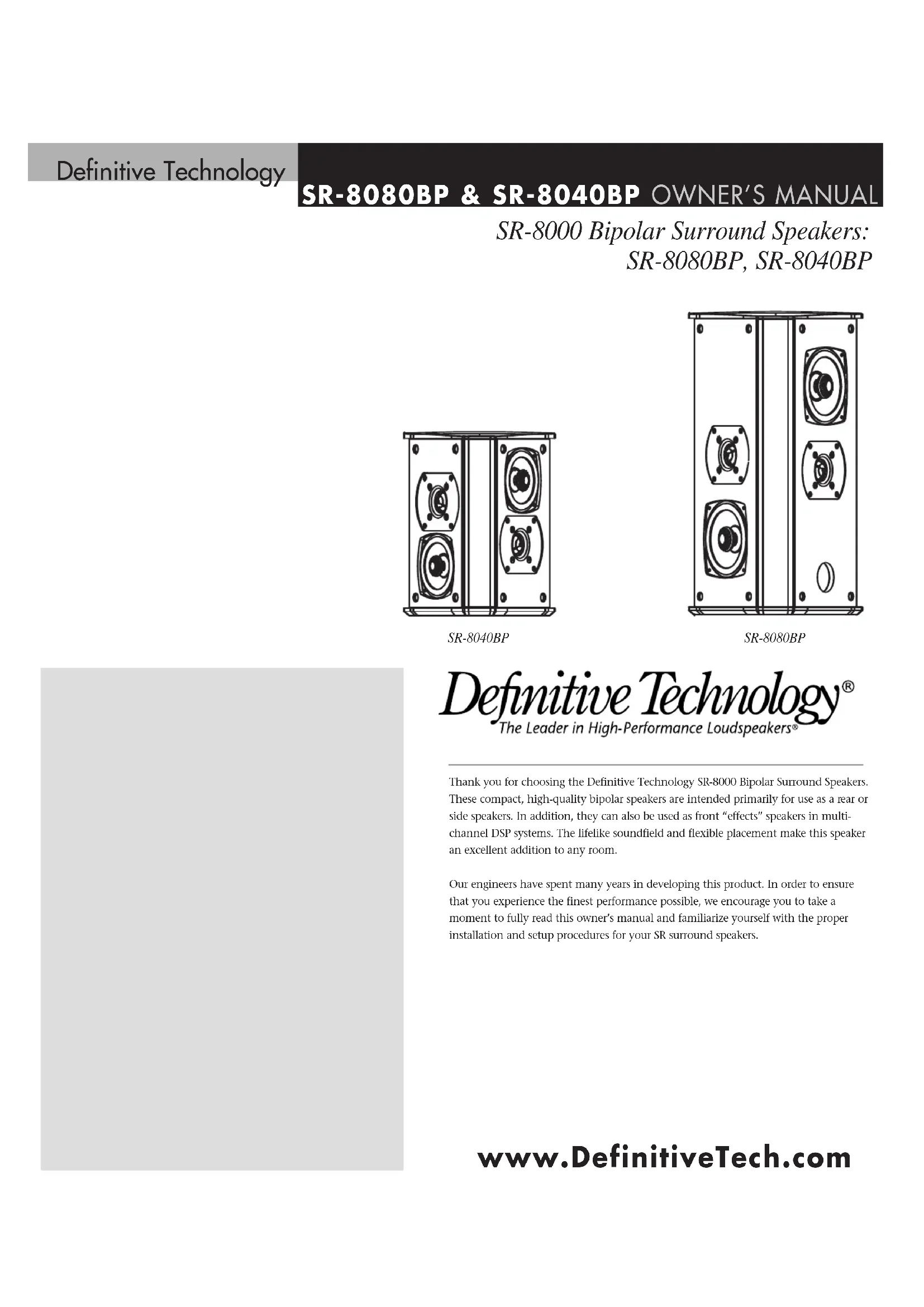 SR8080BP - Speaker DEFINITIVE TECHNOLOGY - Free user manual and instructions