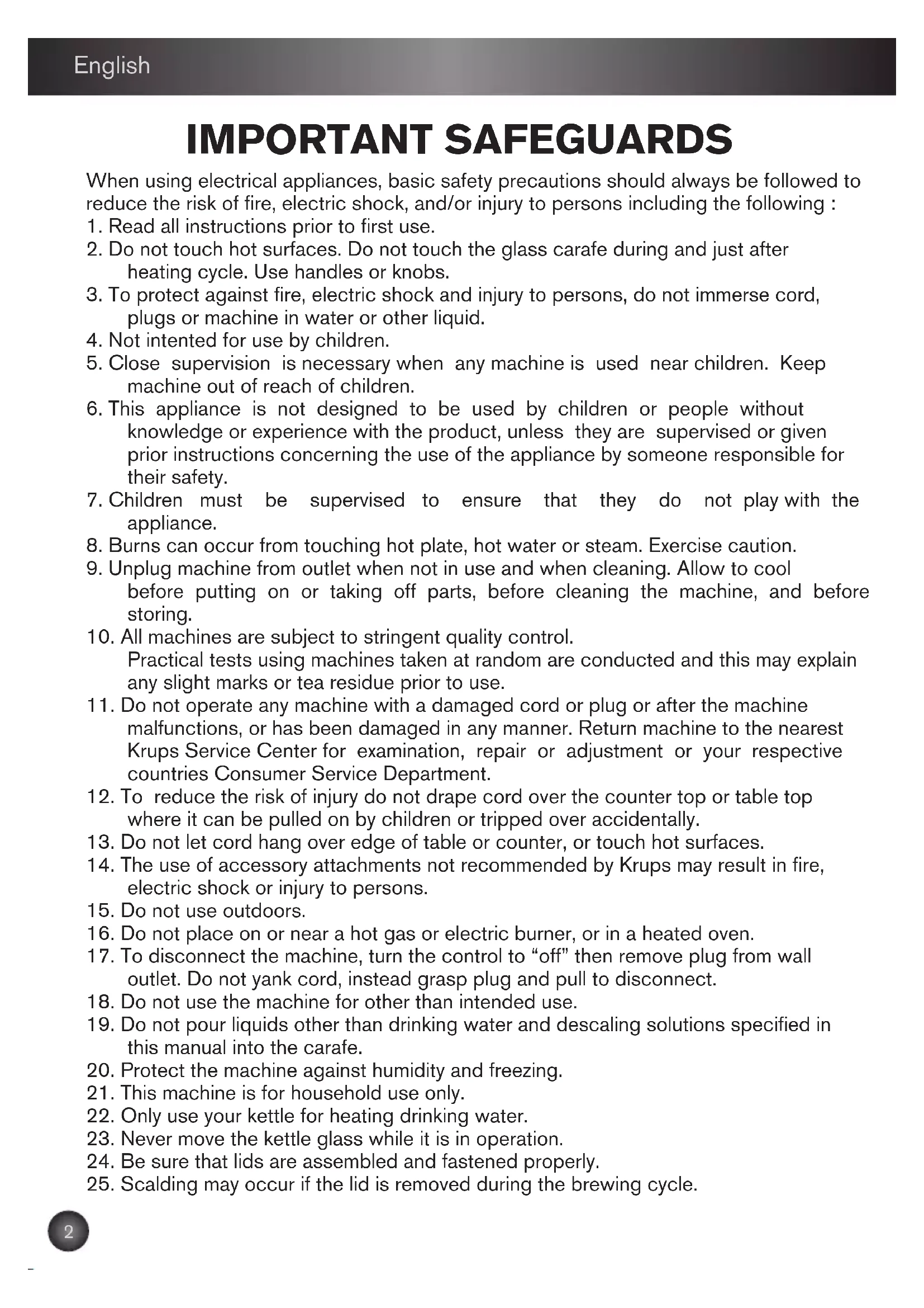 14. The use of accessory attachments not recommended by Krups may result in fire,