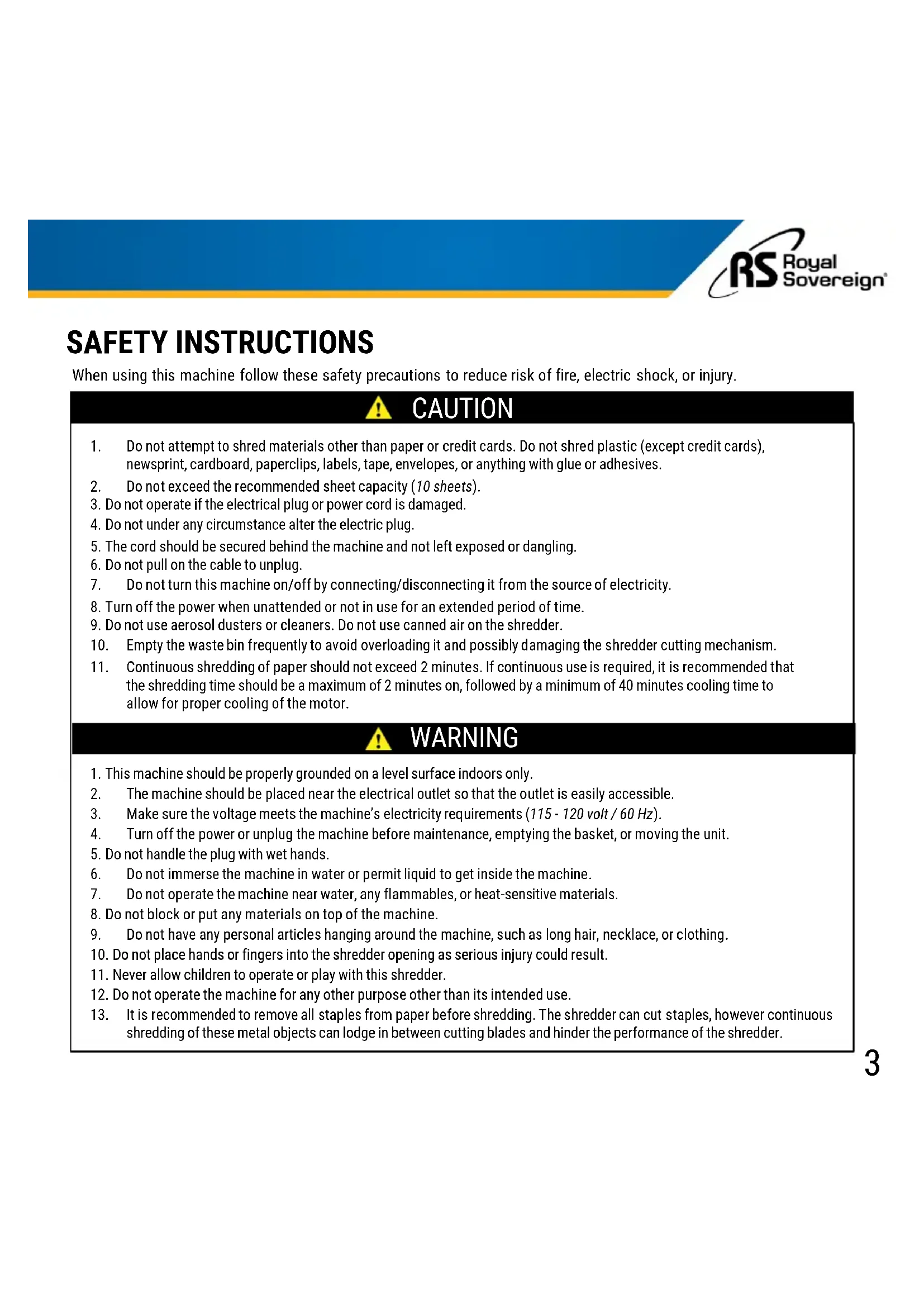 RDS21C10 - Shredder Royal Sovereign - Free user manual and instructions