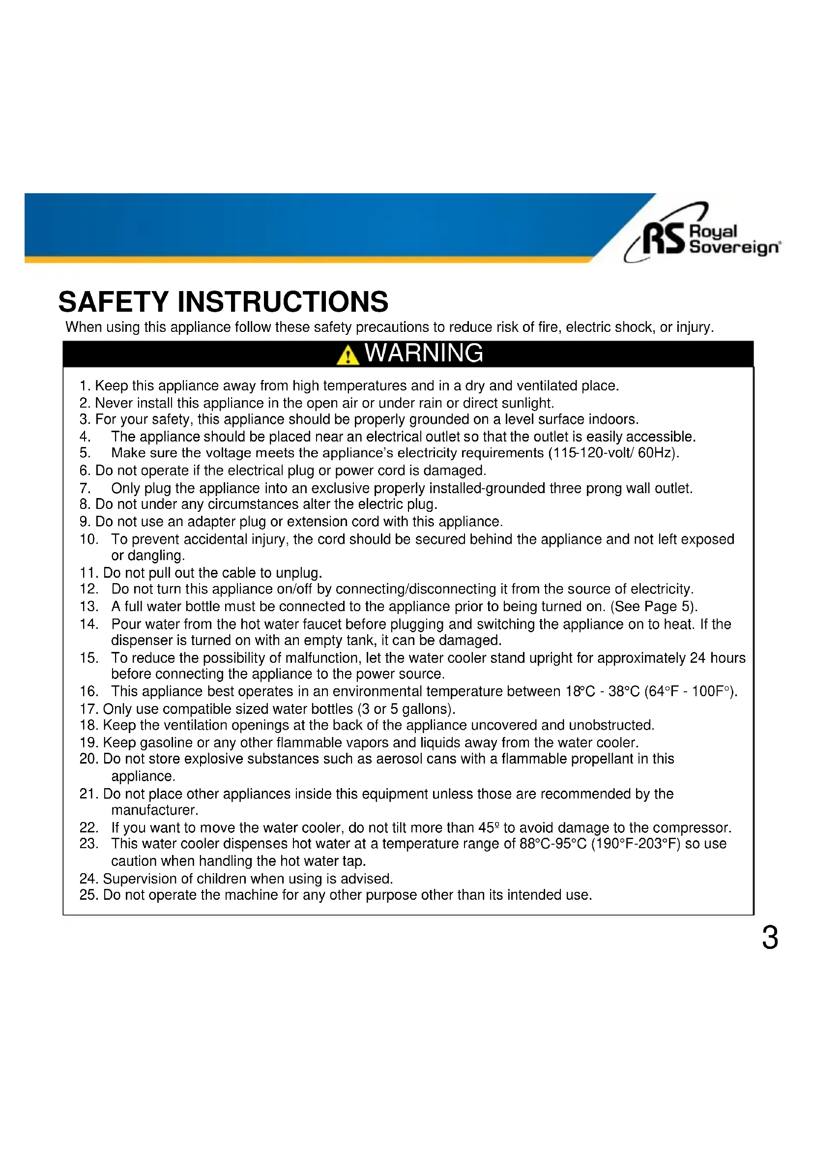 RWD800W - Water dispenser Royal Sovereign - Free user manual and instructions