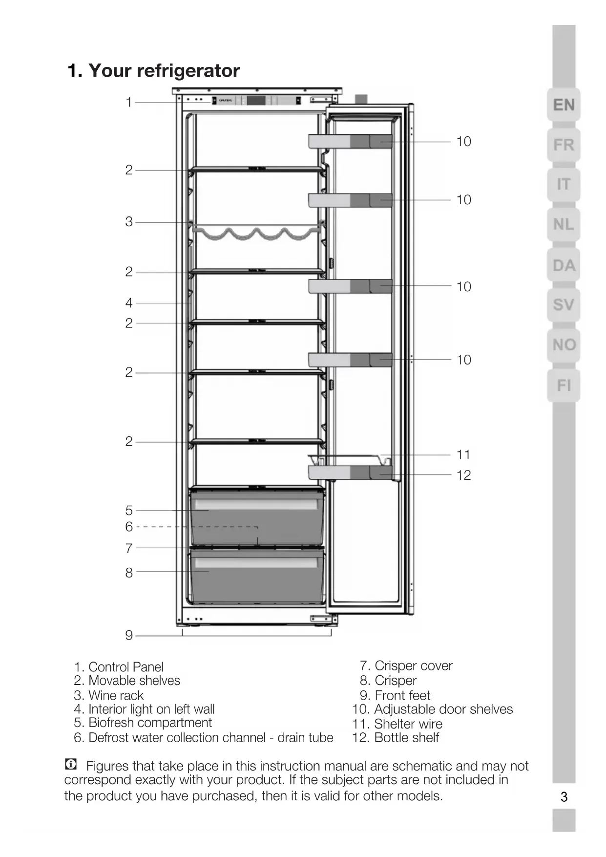 - This refrigerator is intended for only storing food items. It must not be used for any other purpose.