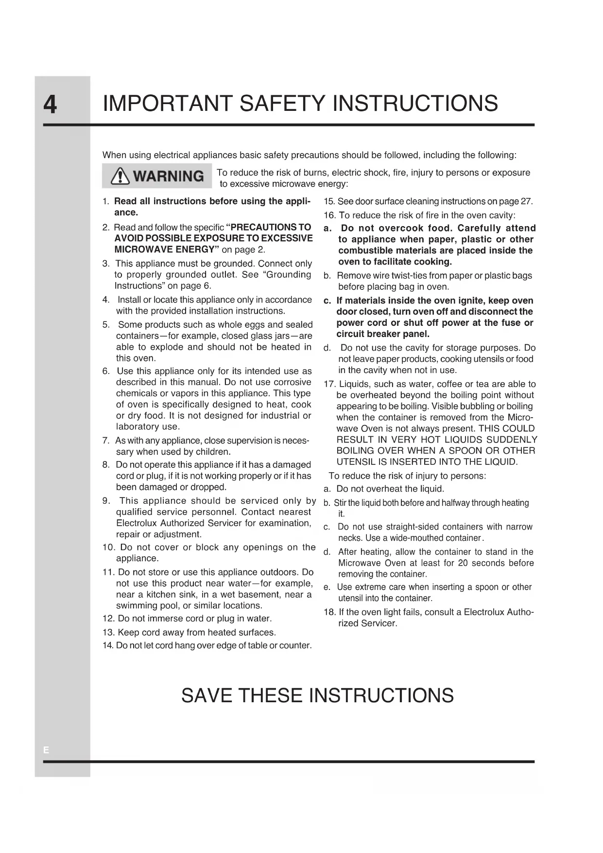 IMPORTANT SAFETY INSTRUCTIONSE