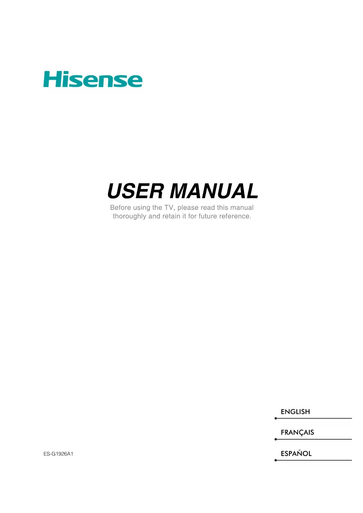 USER MANUAL Before using the TV, please read this manual thoroughly and retain it for future reference. ENGLISH FRANÇAIS ESPAÑOL