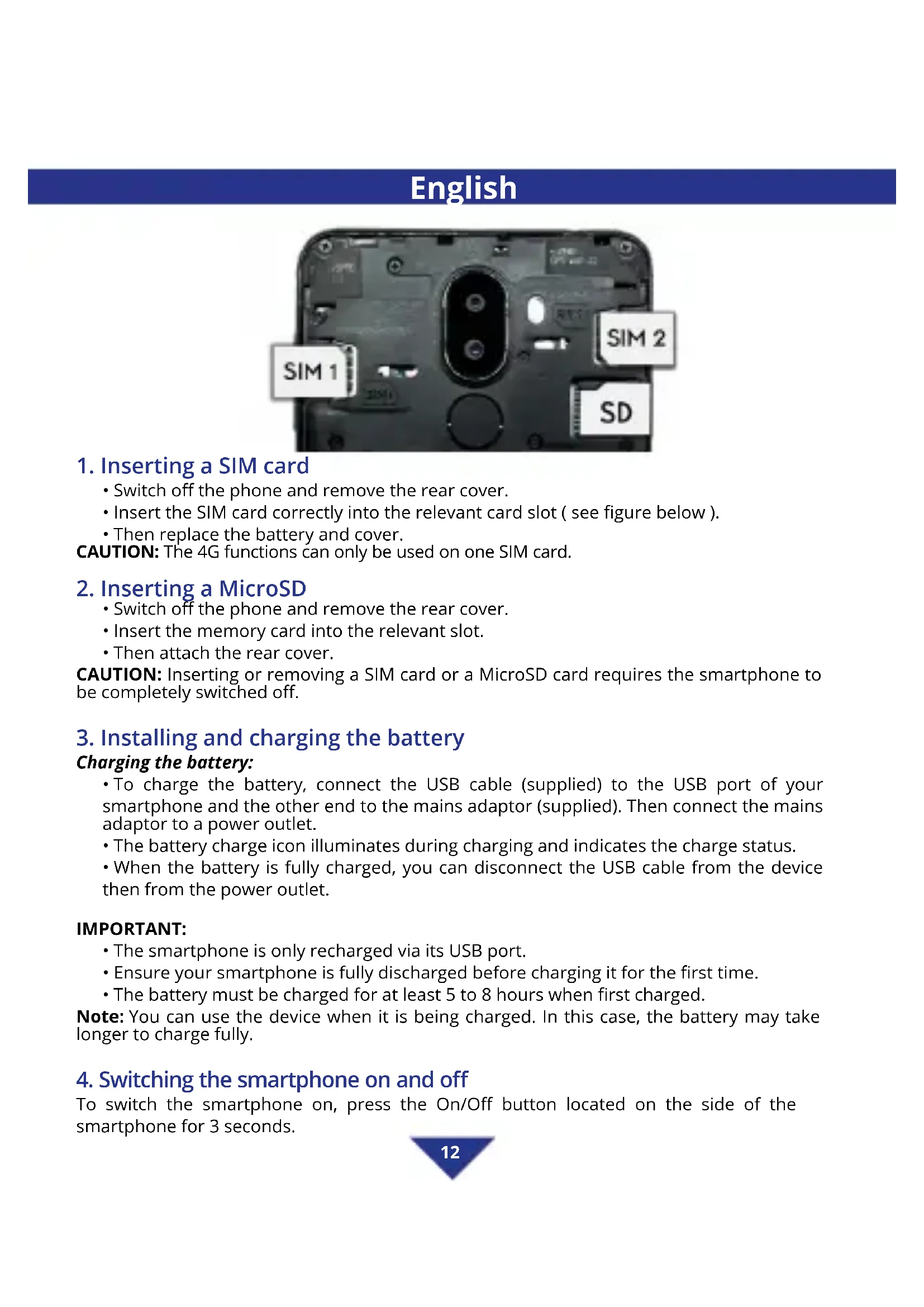 - Then replace the battery and cover. CAUTION: The 4G functions can only be used on one SIM card.