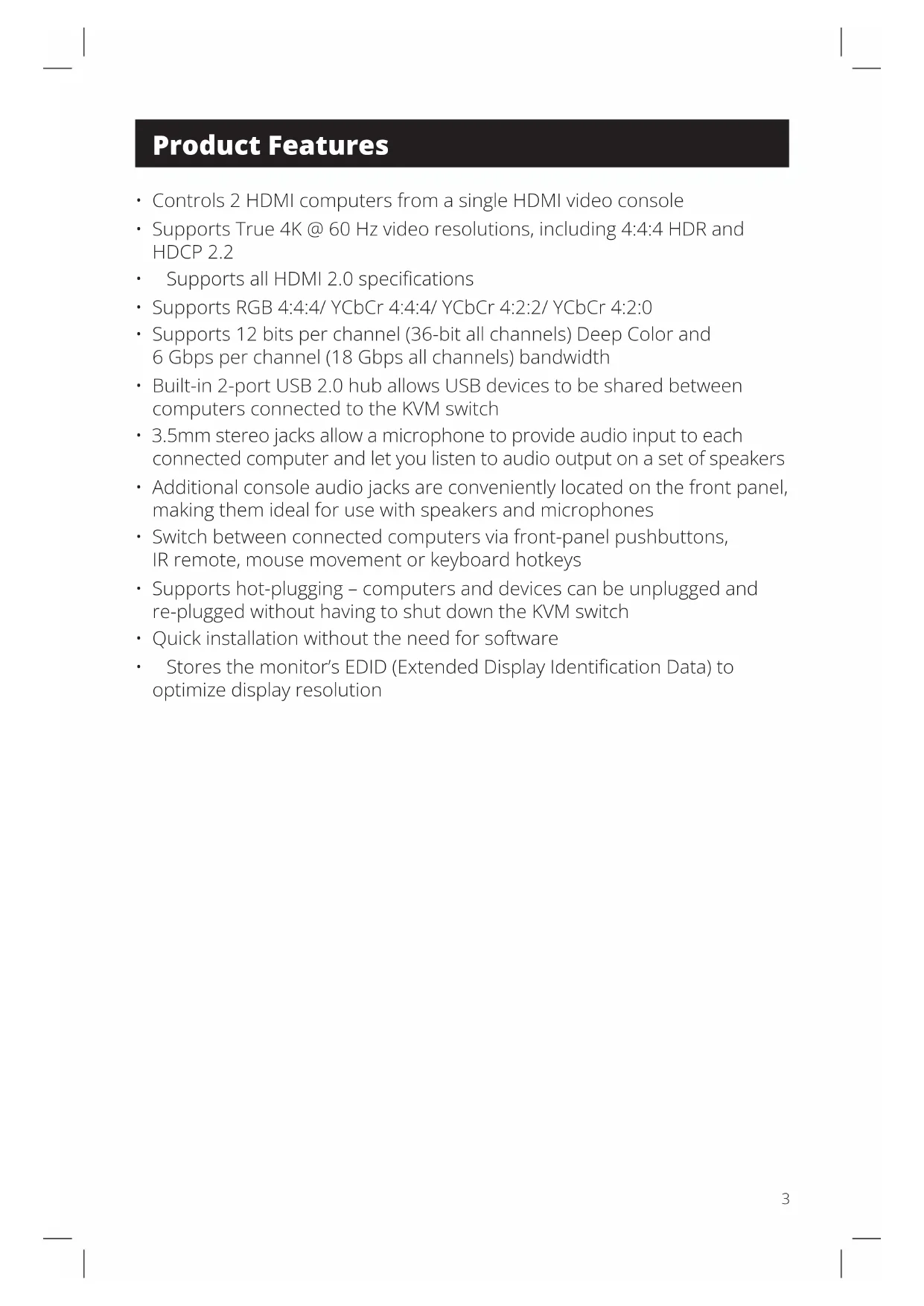 - Supports True 4K @ 60 Hz video resolutions, including 4:4:4 HDR and HDCP 2.2
