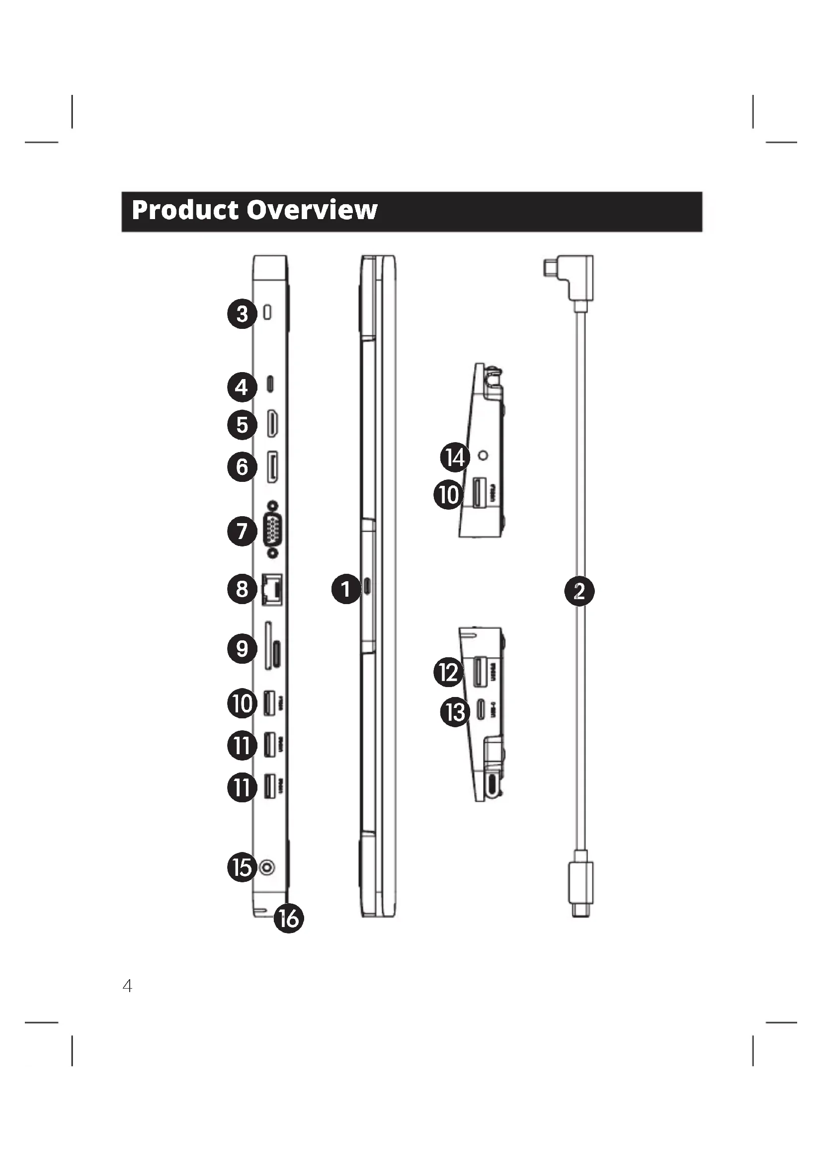 USB Type-C Cable: Detachable USB-C to USB-C cable connects the host to the docking station.