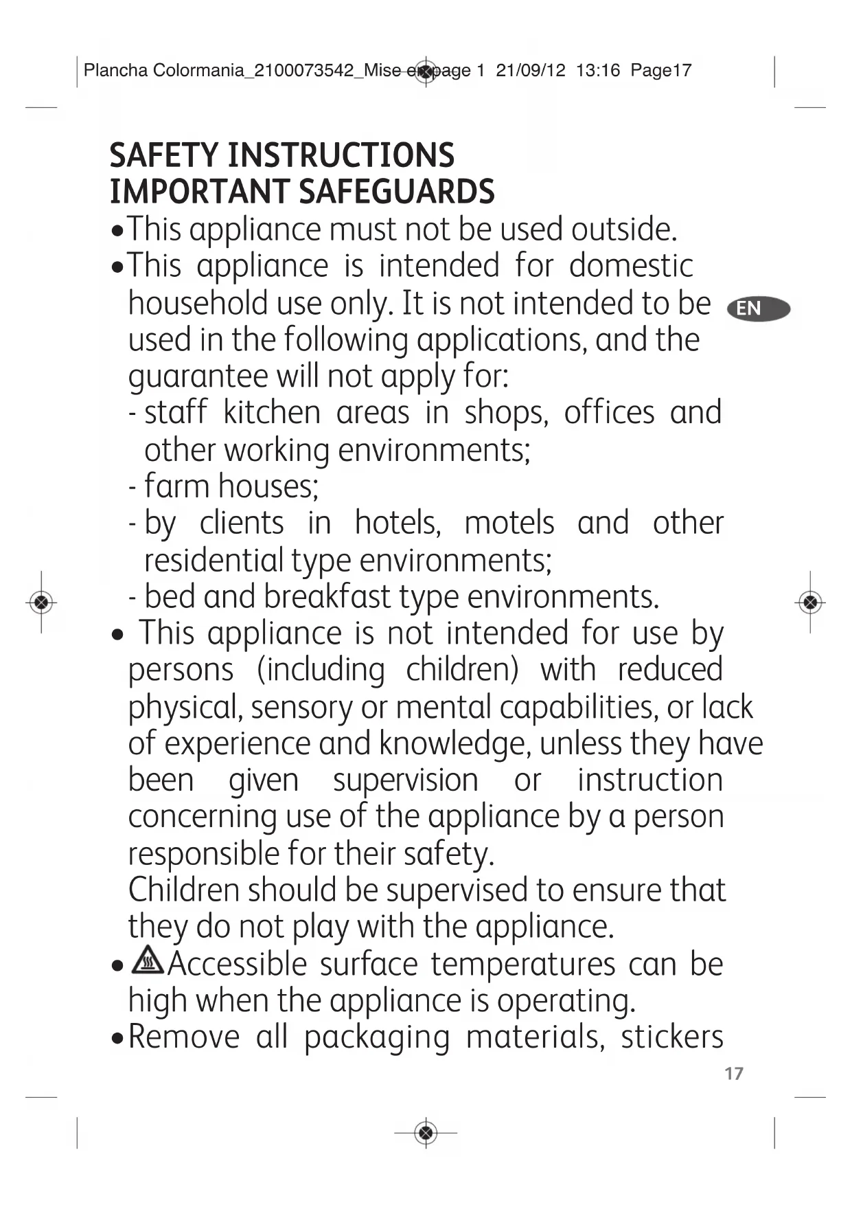 Plancha Colormania_2100073542_Mise en page 1 21/09/12 13:16 Page17and accessories from the inside and the outside of the appliance.