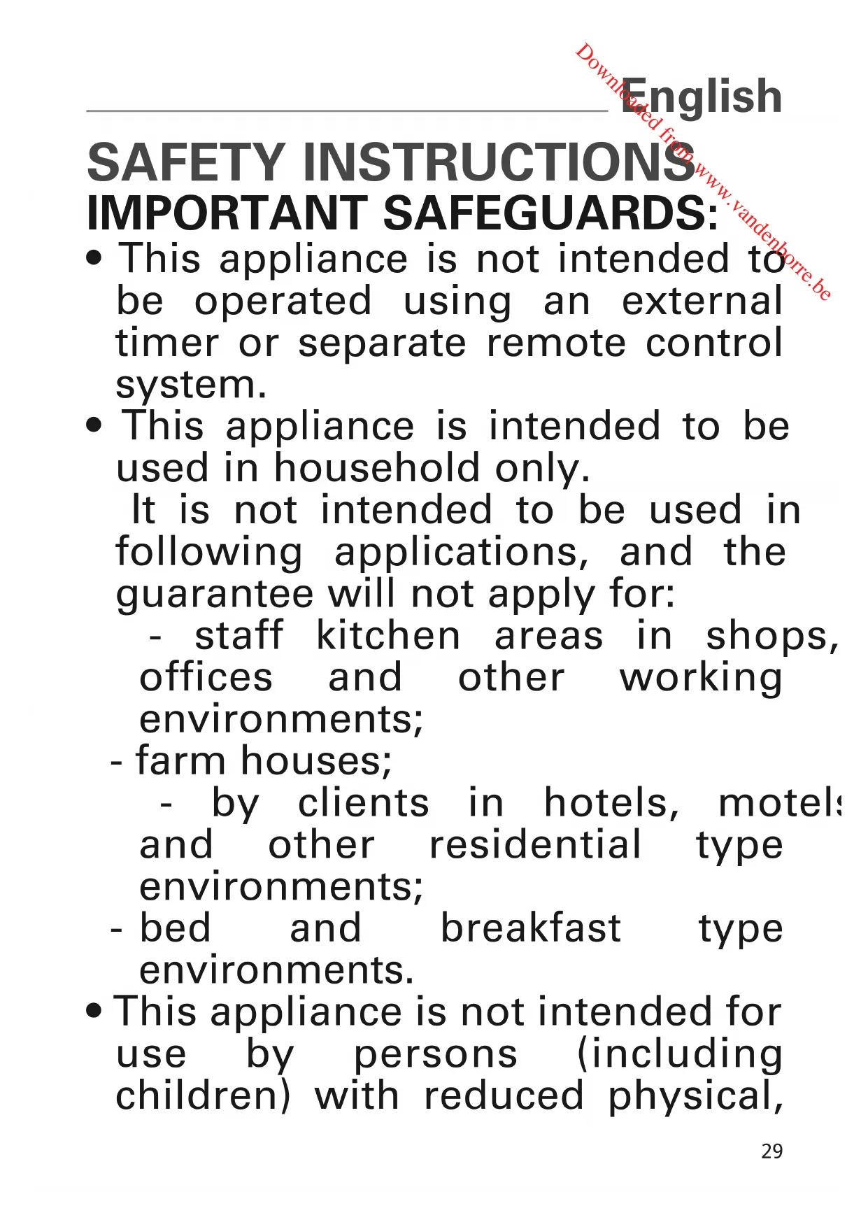 ToasterNC00113269_- 12/05/12 09:13 Page29 Downloaded from www.vandenborre.be18 sensory or mental capabilities, or lack of experience and knowledge, unless they have been given supervision or instruction concerning use of the appliance by a person responsible for their safety.
